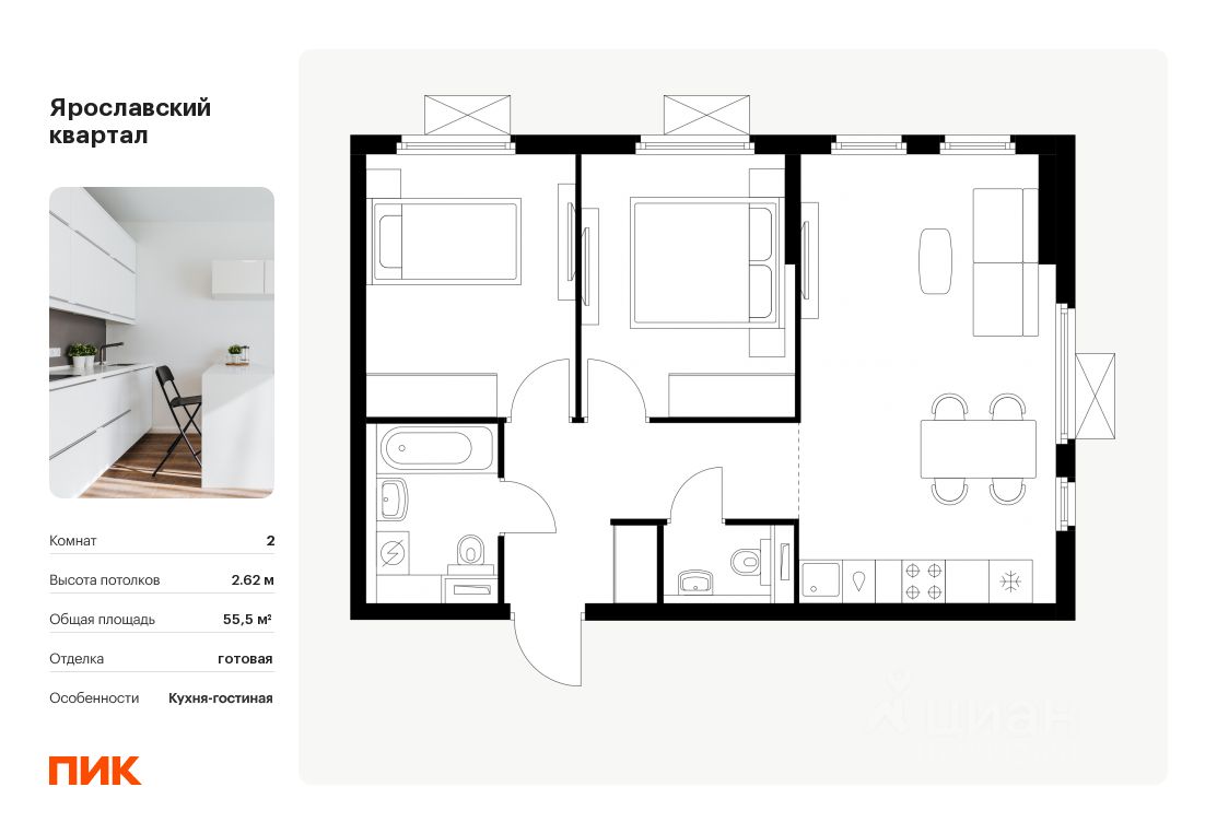 Продаётся 2-комн. квартира площадью 55,5 кв.м на 13 этаже 25 этажного дома (Корпус 1.1, Секция 1) проекта ПИК Ярославский квартал. Светлый просторный подъезд на уровне земли, функциональная планировка, большие окна, c отделкой.