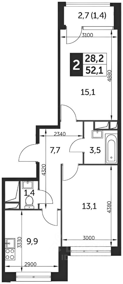 Квартира имеет 2 изолированных комнаты, просторную кухню с балконом, раздельный санузел.