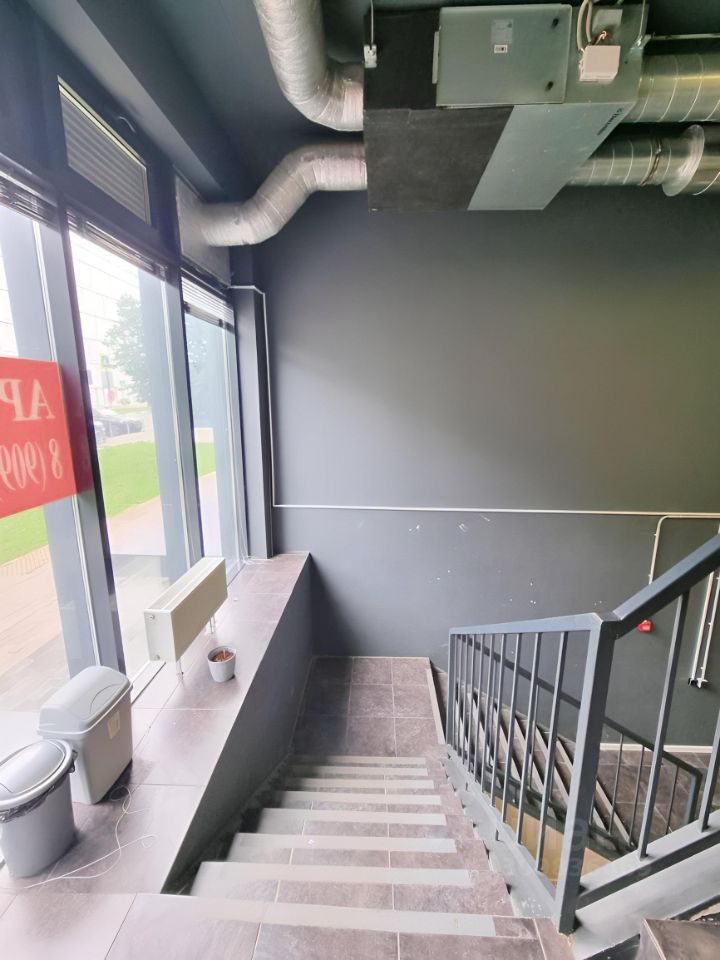 Свободная планировка, окна выходят на ул. Терешковой, общий вход! Проведены все коммуникации: вентиляция, кондиционирование, канализация, горячее и холодное водоснабжение, система отопления, возможность подключения слаботочных систем (интернет, телефон, пр.). Установлена входная дверь на основе витражной алюминиевой конструкции, остекление, монтаж перекрытия и лестницы между первым и цокольными этажами.