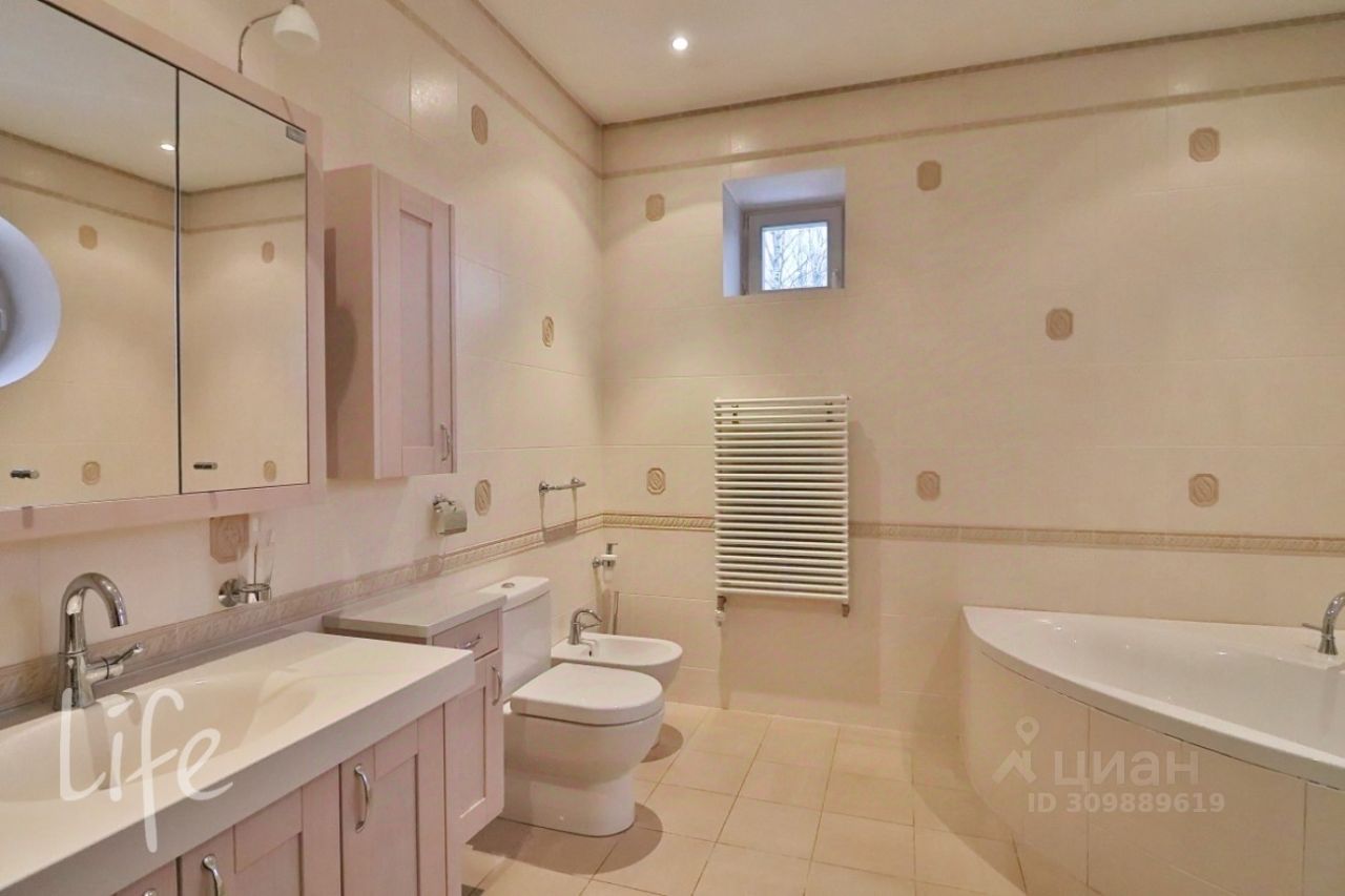 Интерьер выполнен в классическом стиле в светлых пастельных тонах. Вся мебель — итальянская, а бытовая техника — от премиальных брендов. Планировка дома очень удобная, а все коммуникации проведены централизованно. Установлены кондиционер и система встроенного пылесоса.