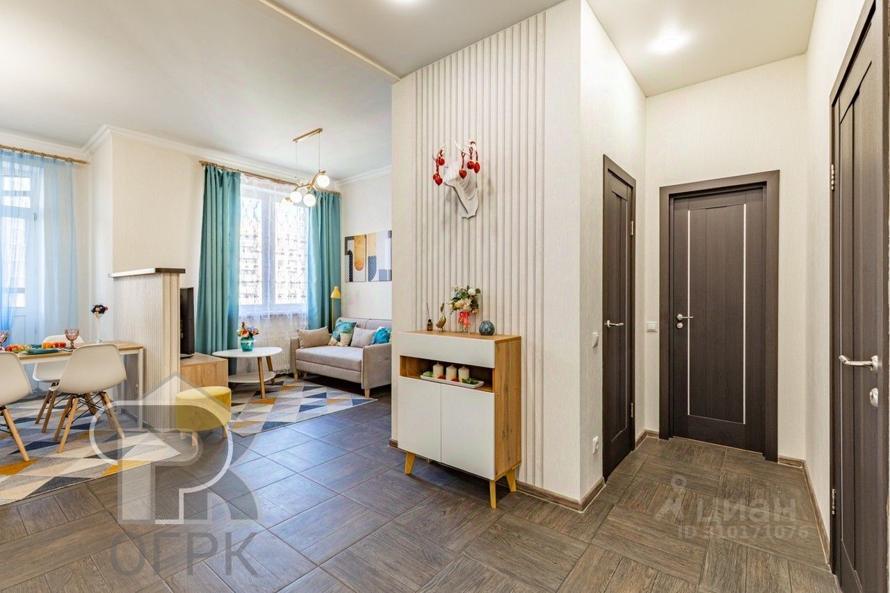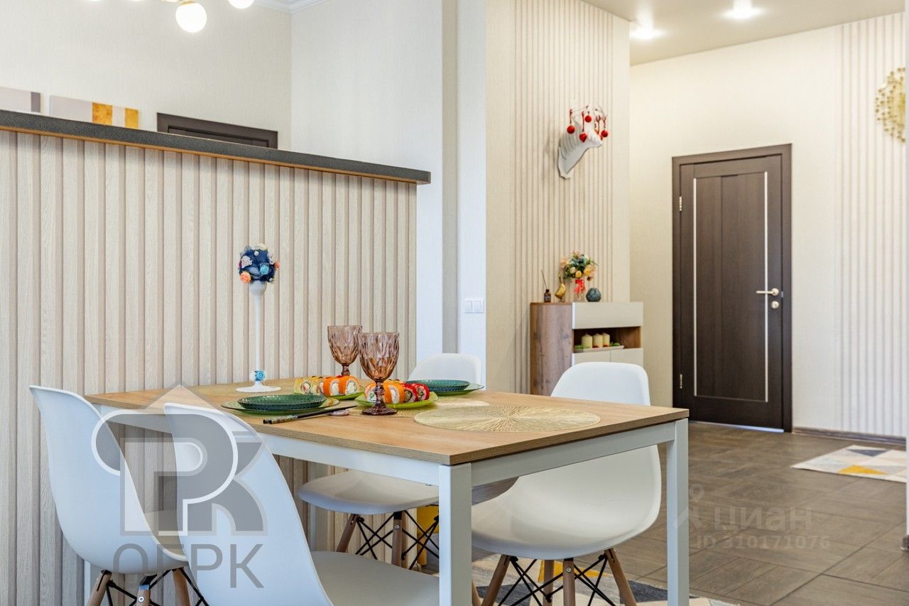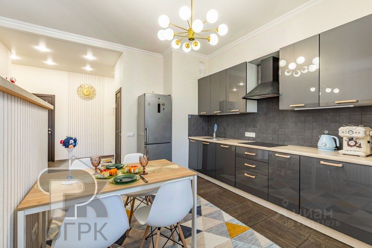 Функциональная планировка: просторная кухня-гостиная (24,3 кв.м) с разделением на 2 зоны, большая спальня (13,3 кв.м), уютная детская (9,8 кв.м). Узаконенная перепланировка, в которой все продумано до мелочей: 2 санузла, гардеробная, встроенный скрытый шкаф в спальне, уютная барбекю-зона на лоджии. В квартире выполнен свежий современный ремонт из качественных материалов, после которого в квартире никто не жил. Установлены новая мебель и техника.