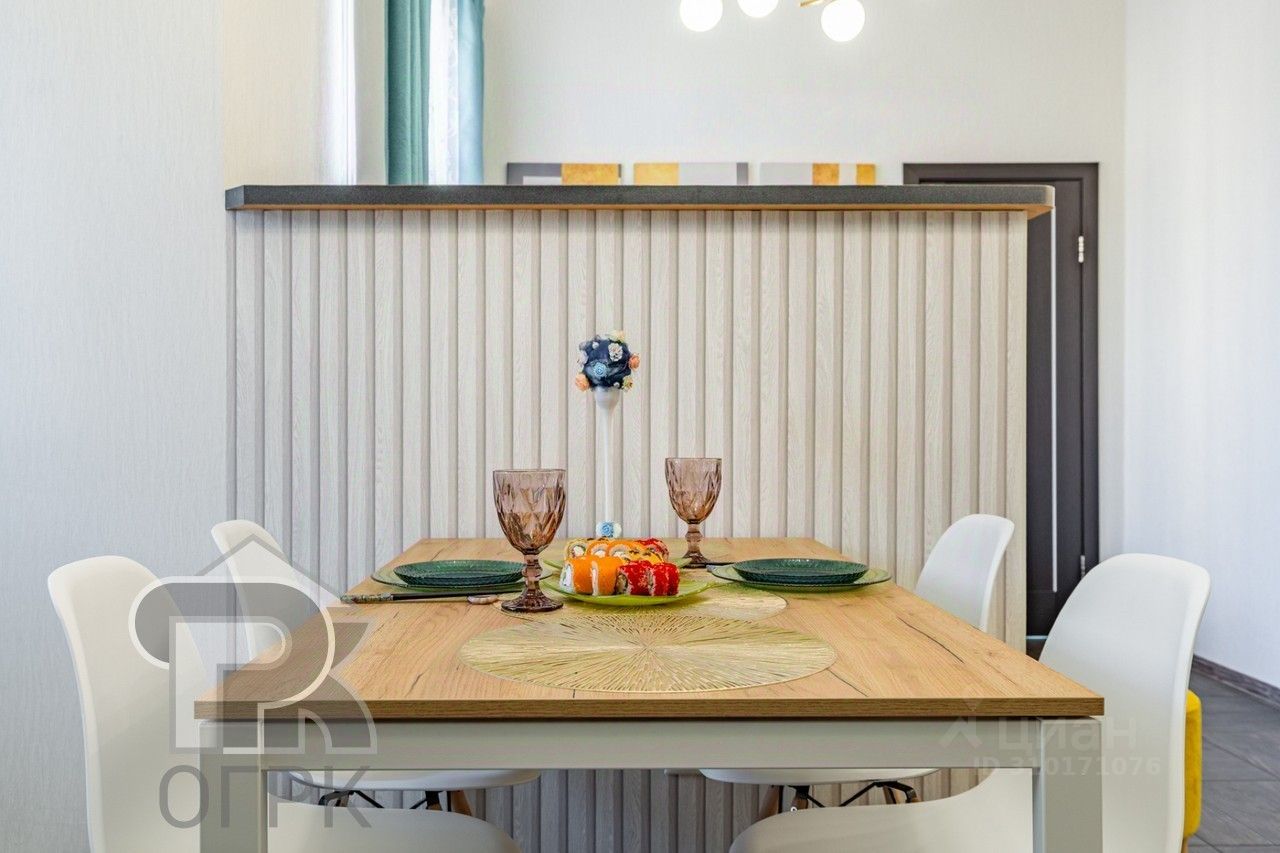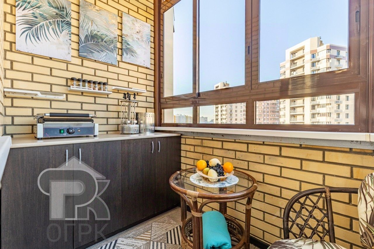 Функциональная планировка: просторная кухня-гостиная (24,3 кв.м) с разделением на 2 зоны, большая спальня (13,3 кв.м), уютная детская (9,8 кв.м). Узаконенная перепланировка, в которой все продумано до мелочей: 2 санузла, гардеробная, встроенный скрытый шкаф в спальне, уютная барбекю-зона на лоджии. В квартире выполнен свежий современный ремонт из качественных материалов, после которого в квартире никто не жил. Установлены новая мебель и техника. Высокий этаж и распашная планировка обеспечивают много света в квартире и свободную циркуляцию воздуха.