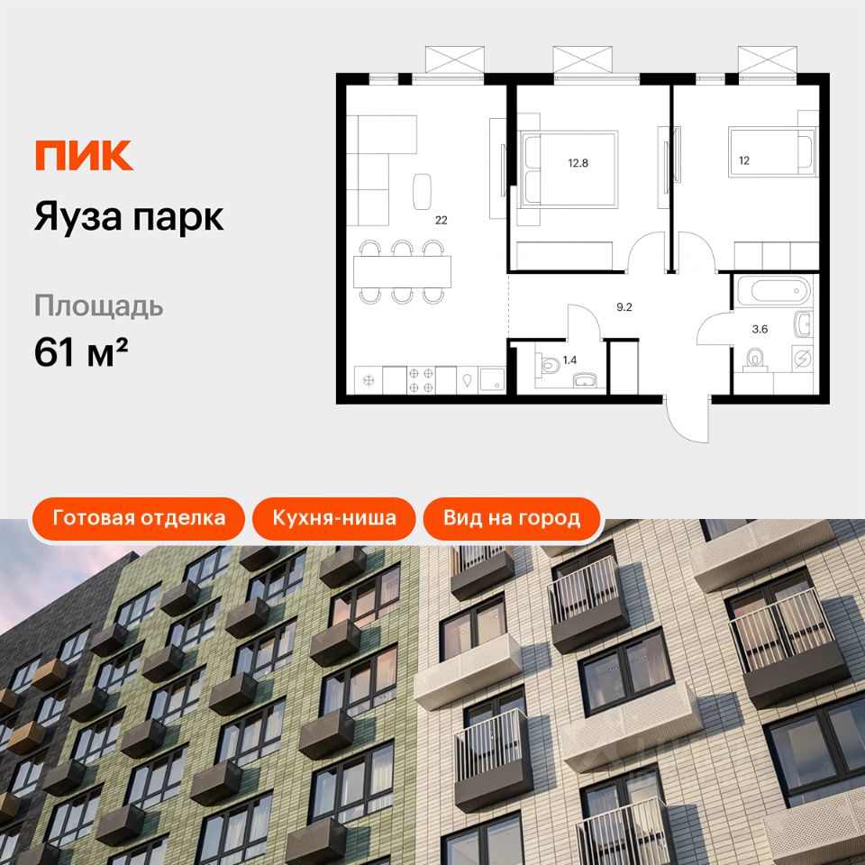 Продаётся 2-комн. квартира площадью 61 кв.м на 12 этаже 24 этажного дома (Корпус 6, Секция 1) проекта ПИК Яуза парк. Светлый просторный подъезд на уровне земли, функциональная планировка, большие окна, c отделкой.