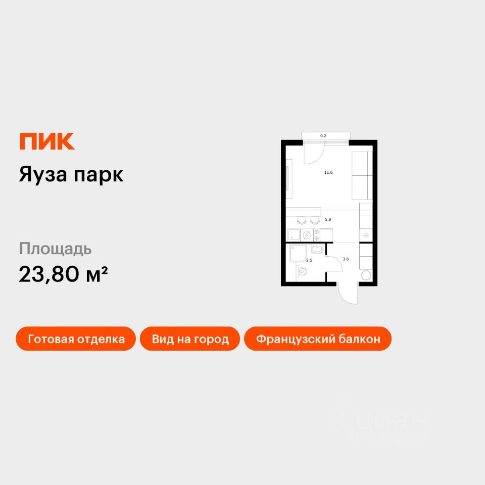 Продаётся квартира-студия площадью 23,8 кв.м на 11 этаже 24 этажного дома (Корпус 5, Секция 1) проекта ПИК Яуза парк. Светлый просторный подъезд на уровне земли, функциональная планировка, большие окна, c отделкой.