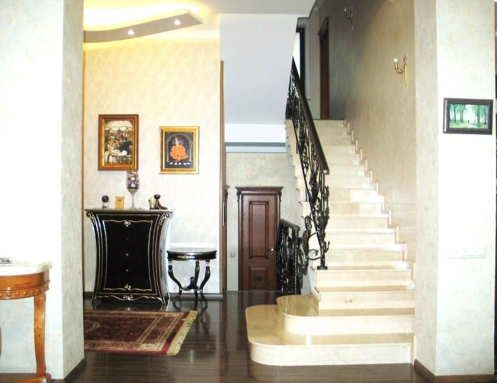 Дом расположен в центре сформированного охраняемого коттеджного поселка. Граничит с заповедником - парком Горки Ленинские, с собственным выходом на территорию заповедника, где благоустроена инфраструктура для пеших и велосипедных прогулок в летнее время и прокладываются лыжные трассы в зимний период. В доме 6 спален, 2 рабочих кабинета, кухня-гостиная, домашний кинотеатр, тренажерный зал, котельная, прачечная, гардеробная и 2 кладовые. На каждом уровне есть отдельный санузел и санузел с душевой. Высокие потолки в помещениях дают много света и пространства. Просторная кухня-гостиная размером более 70 кв. метров имеет отдельный выход на террасу и в сад, гостиная со вторым светом и выходом в каминную комнату.