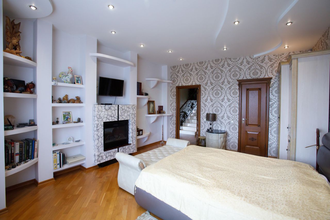 Дом расположен в центре сформированного охраняемого коттеджного поселка. Граничит с заповедником - парком Горки Ленинские, с собственным выходом на территорию заповедника, где благоустроена инфраструктура для пеших и велосипедных прогулок в летнее время и прокладываются лыжные трассы в зимний период. В доме 6 спален, 2 рабочих кабинета, кухня-гостиная, домашний кинотеатр, тренажерный зал, котельная, прачечная, гардеробная и 2 кладовые. На каждом уровне есть отдельный санузел и санузел с душевой. Высокие потолки в помещениях дают много света и пространства. Просторная кухня-гостиная размером более 70 кв.