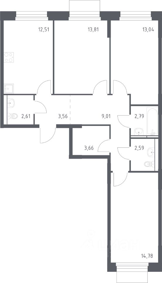 Продаётся 3-комнатная квартира в строящемся доме (Корпус 5), срок сдачи: III-кв. 2025, общей площадью 78.36 кв.м., на 14 этаже. При выборе места строительства мы отталкивались от потребностей реальных людей: семей с детьми, для которых важна близость школ, детских садов и поликлиник, молодёжи, которая активно строит карьеру, людей постарше, которые ценят тишину, чистый воздух, доступность магазинов и других социальных объектов. В то же время комплекс с двух сторон окружает Пироговский лесопарк площадью 1800 га. До национального парка ''Лосиный остров'' и Пироговского водохранилища - 15 минут на автомобиле. Проект включает 3 детских сада, 2 школы и физкультурно-оздоровительный комплекс. А на площадках Playhub юные жители комплекса ''Мытищи Парк'' смогут играть круглый год. Территория комплекса будет огорожена. Чтобы сделать дворы уютнее, мы посадим крупные деревья, кустарники и другие растения. Также обустроим пешеходный бульвар с центральной площадью для проведения мероприятий. В корпусах предусмотрены кладовые помещения - удобное и современное решения для хранения сезонного спортивного инвентаря и других крупногабаритных вещей.
