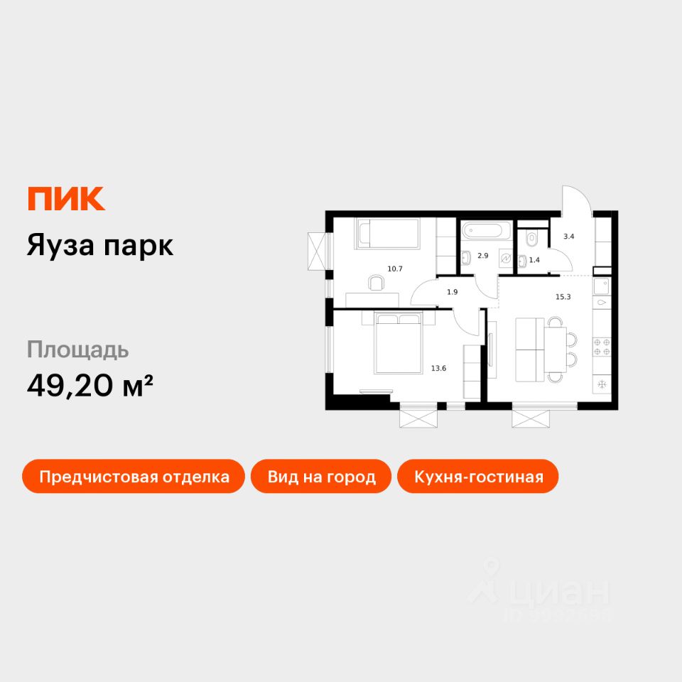 Продаётся 2-комн. квартира площадью 49,2 кв.м на 2 этаже 24 этажного дома (Корпус 10, Секция 1) проекта ПИК Яуза парк. Светлый просторный подъезд на уровне земли, функциональная планировка, большие окна, предчистовая отделка.