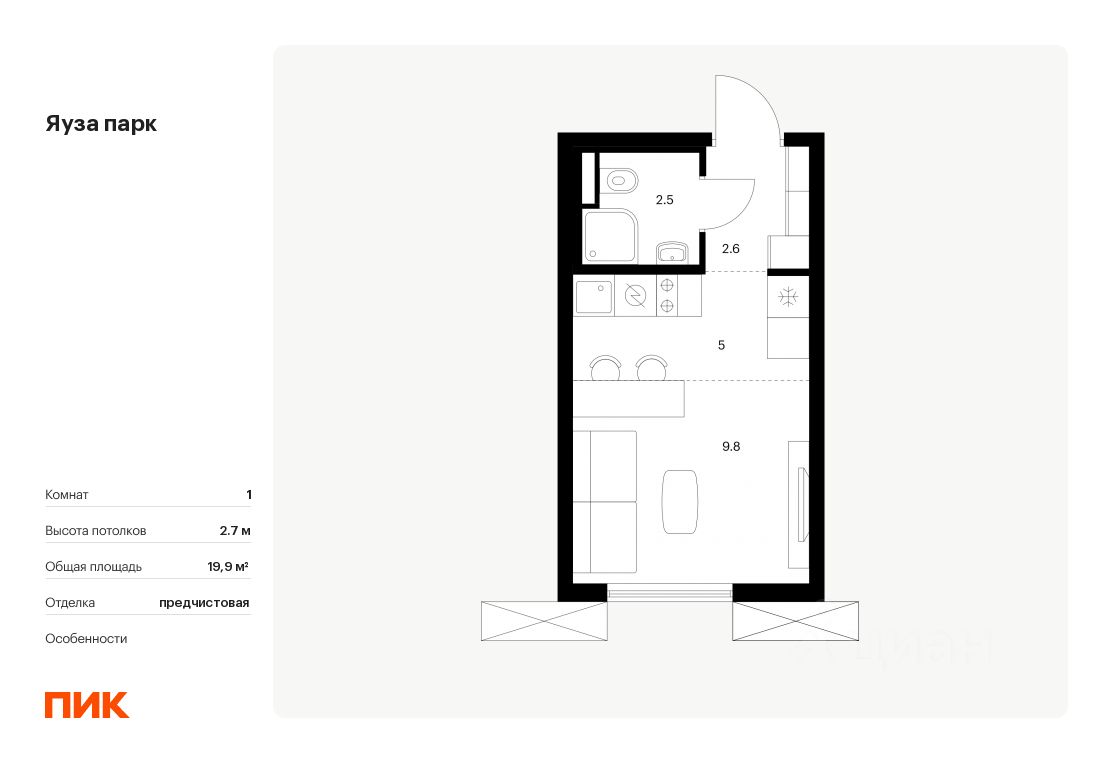 Общая площадь19,9 м2
