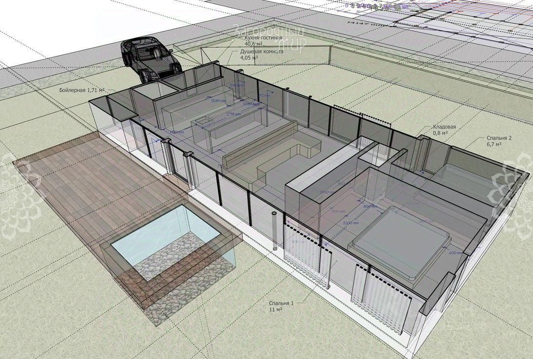 Фундамент дома: железобетонный, забивной. Технология стен: комбинированная - газобетонный блок, металлические колонны, утеплённый ЛСТК. Перекрытия: едино-связная деревянная - ''диск жёсткости''. Помимо качественного ремонта, выполненного согласно дизайн-проекту, профессиональными строителями, Покупатель получает стильный газовый камин, мультизональное освещение, бионический горячий пруд-бассейн на террасе, настоящий каменный кухонный остров, умное управление климатом, голосовое управление шторами. Дом зарегистрирован с назначением ''Жилой'' (открыта прописка). Очень удобная планировка: просторная кухня-гостиная, 2 изолированные спальни, бойлерная, кладовая, с/у и большая терраса с бассейном как прекрасное дополнение к дому. Во всем доме панорамное остекление, что делает его очень светлым. Проектом предусмотрена (в будущем, в случае необходимости) модульная функция быстрого увеличения площади дома до S(жилая)=110 м2: 4 спальни, 2 санузла.