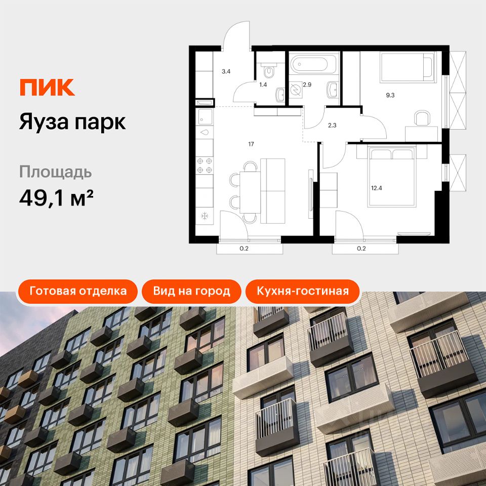 Продаётся 2-комн. квартира площадью 49,1 кв.м на 3 этаже 24 этажного дома (Корпус 5, Секция 1) проекта ПИК Яуза парк. Светлый просторный подъезд на уровне земли, функциональная планировка, большие окна, c отделкой.