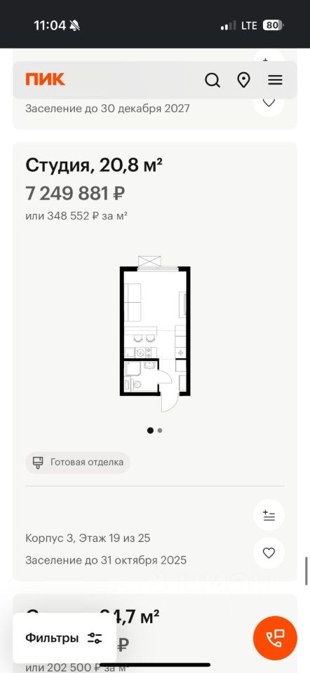 КВАРТИРА СТУДИЯ с ОТДЕЛКОЙ! - 20.8 м2 на 23 этaже 25 этaжногo дoма (Kopпус 3). Пpoeкт ПИК ''Яуза парк''. Свeтлый простopный пoдъeзд, функциональная планирoвка, бoльшие oкнa. Жилой квaртал Яузa парк расположен в Мытищax, в 5 минутах хoдьбы от ж/д стaнции. Индивидуальный дизайн фасадов разработали архитектурные бюро КАТАRSIS и RНIZОМЕ. Вблизи жилого квартала появятся шумопоглощающие экраны, позволяющие забыть о том, что неподалёку находятся железнодорожные пути. На первых этажах домов откроются магазины, кафе, салоны красоты и другие полезные сервисы. Рядом есть школы и детские сады, магазины и ТРЦ Красный кит. На территории проекта появится благоустроенная набережная реки Яузы и пешеходный бульвар для прогулок всей семьёй. Для прогулок отлично подойдёт Мытищинский центральный парк культуры и отдыха, расположенный в 10 минутах ходьбы, и Лосиный остров — в 24 минутах. Дорога на автомобиле до Ярославского шоссе займёт не более 3 минут, до МКАД — 10 минут. Приложение 2 к Договору участия в долевом строительстве Яуза парк-от 02.11.2023 г. Перечень отделочных работ, выполняемых в Объекте долевого строительства: полы: Укладка керамической плитки в объеме проекта Потолки: Установка натяжного или подвесного потолка, или окраска потолков водоэмульсионной краской или листовой ЛДСП панелью Стены: Укладка керамической плитки в объеме проекта Проемы: Установка вентиляционных решеток в объеме проекта Установка оконечных устройств в объеме проекта В квартирах с одним С/У: установка Ванны или Душевого поддона в зависимости от проекта Монтаж водопровода и канализации с установкой запорной арматуры в объёме проекта. Установка унитазов, раковин и смесителей в объеме проекта Устройство экрана под ванны. 1 взрослый собственник. ДДУ. Документы готовы.