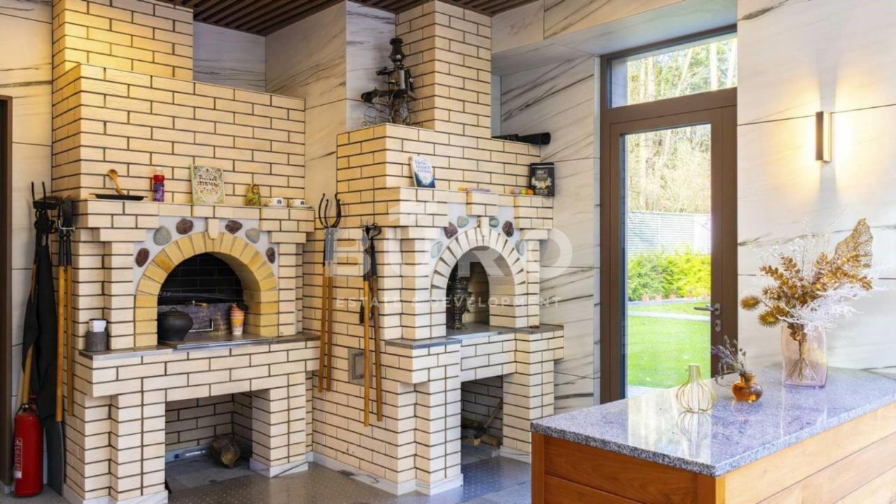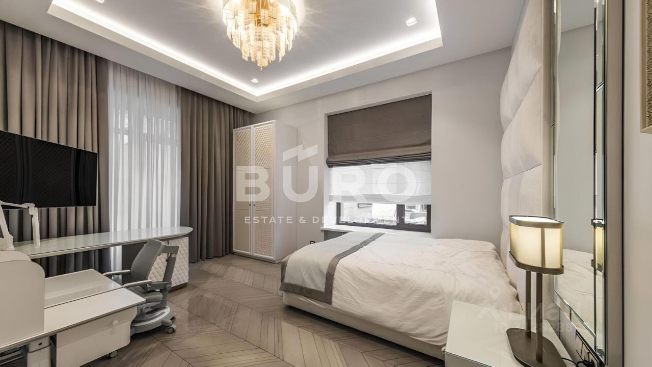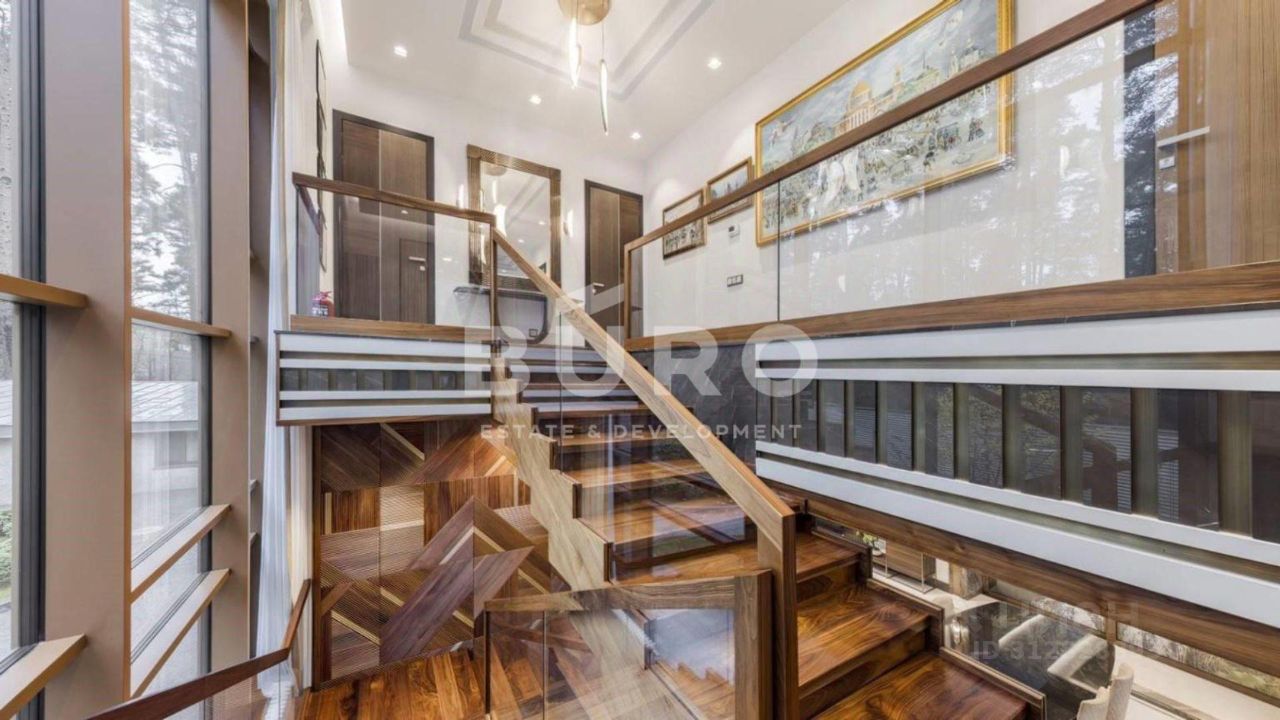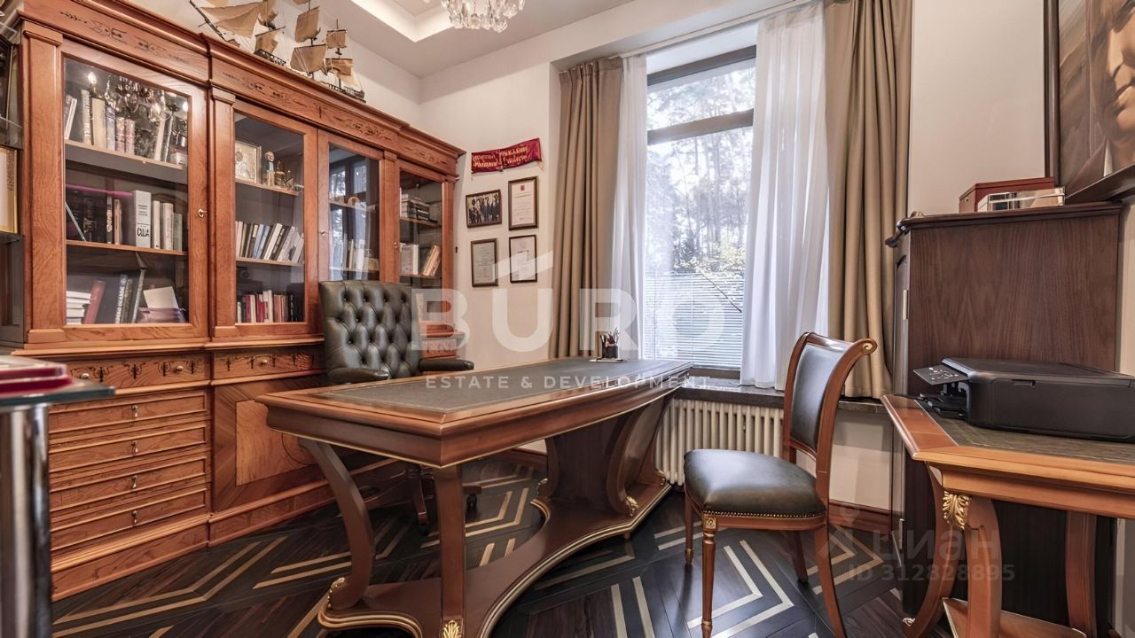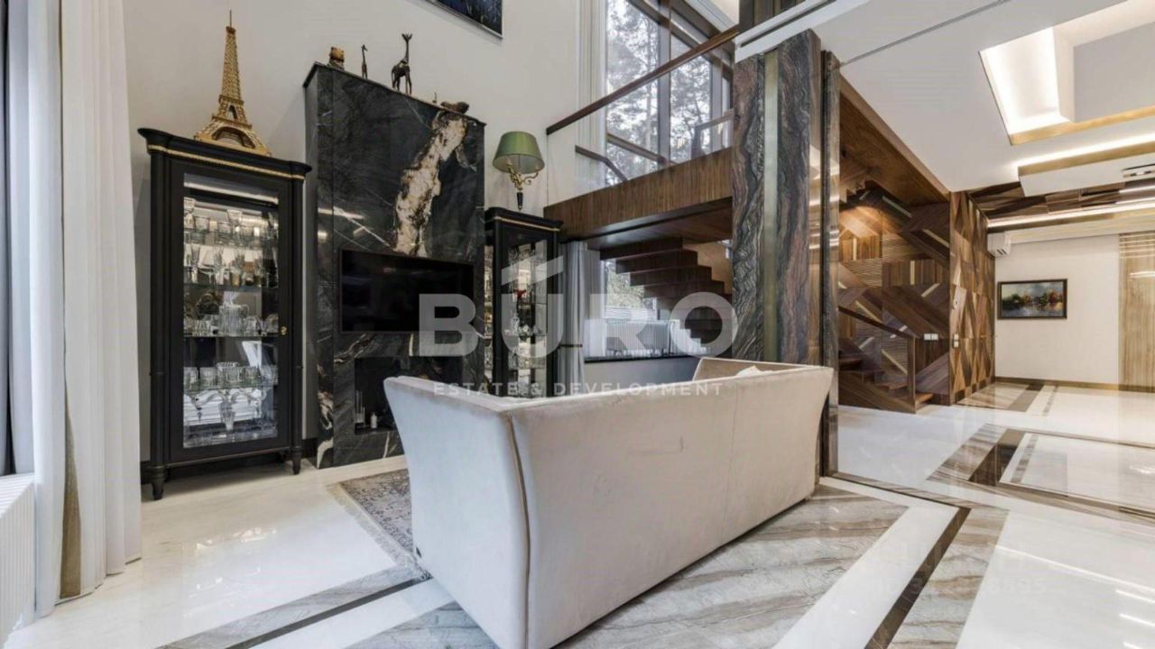 Интерьеры полностью укомплектованы мебелью от итальянских производителей, таких как Luciano Zonta, Arte Brotto, Guerra Vanni, Henge и других. Для создания уюта продуманы различные варианты освещения, установлены дизайнерские люстры и светильники. Планировочным решением предусмотрены кухня-гостиная с камином, 6 спален, кабинет, тренажерный зал, холл со вторым светом, блок для персонала с отдельным входом, гараж на 2 машины и SPA-зона с бассейном и хаммамом.