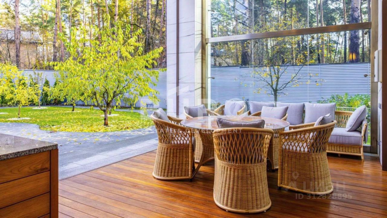 Участок окружен вековыми соснами, а вдоль периметра растут вечнозеленые туи. На территории организовано экопространство по индивидуальному проекту с грамотным зонированием, художественной подсветкой и плавными дорожками из термообработанной брусчатки. Здесь есть парк с редкими деревьями, плодовый сад, поляна и малинник. Завершает особую и уютную атмосферу фонтан и каскадный пруд с водопадом.