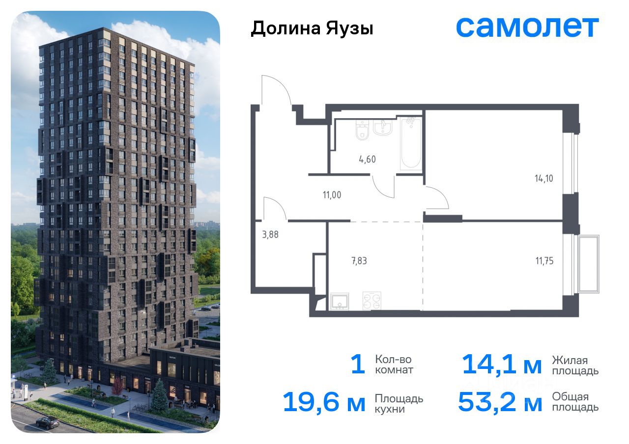 Предлагается 1-комнатная квартира комфорт-класса 53,16 кв.м в корпусе 2 на 3 этаже, в ЖК ''Долина Яузы'' Квартира с чистовой отделкой. Доступность дополнительных опций уточняйте у застройщика.