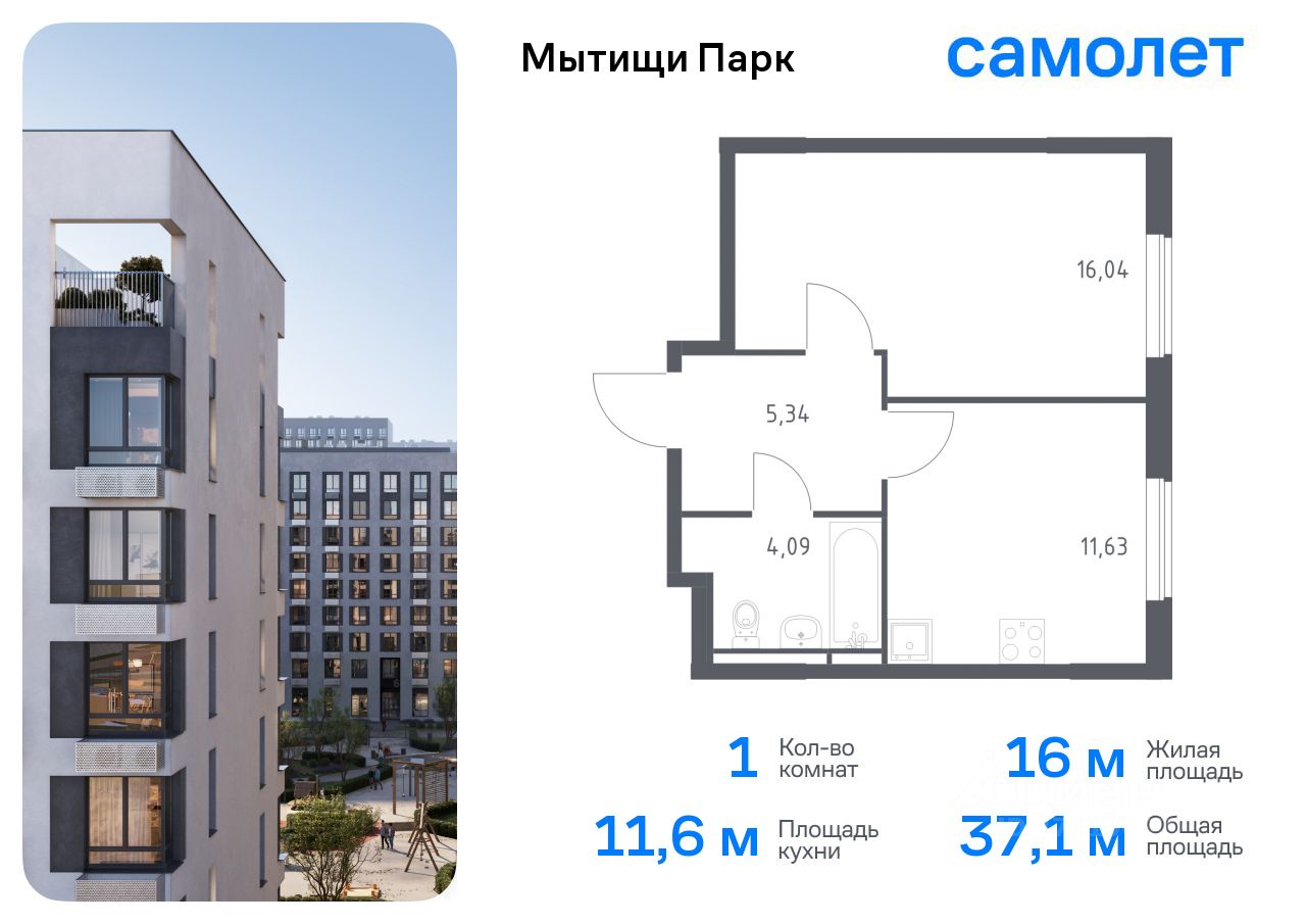 Предлагается 1-комнатная квартира комфорт-класса 37,1 кв.м в корпусе 6 на 6 этаже, в ЖК ''Мытищи Парк'' Квартира с чистовой отделкой. Доступность дополнительных опций уточняйте у застройщика.
