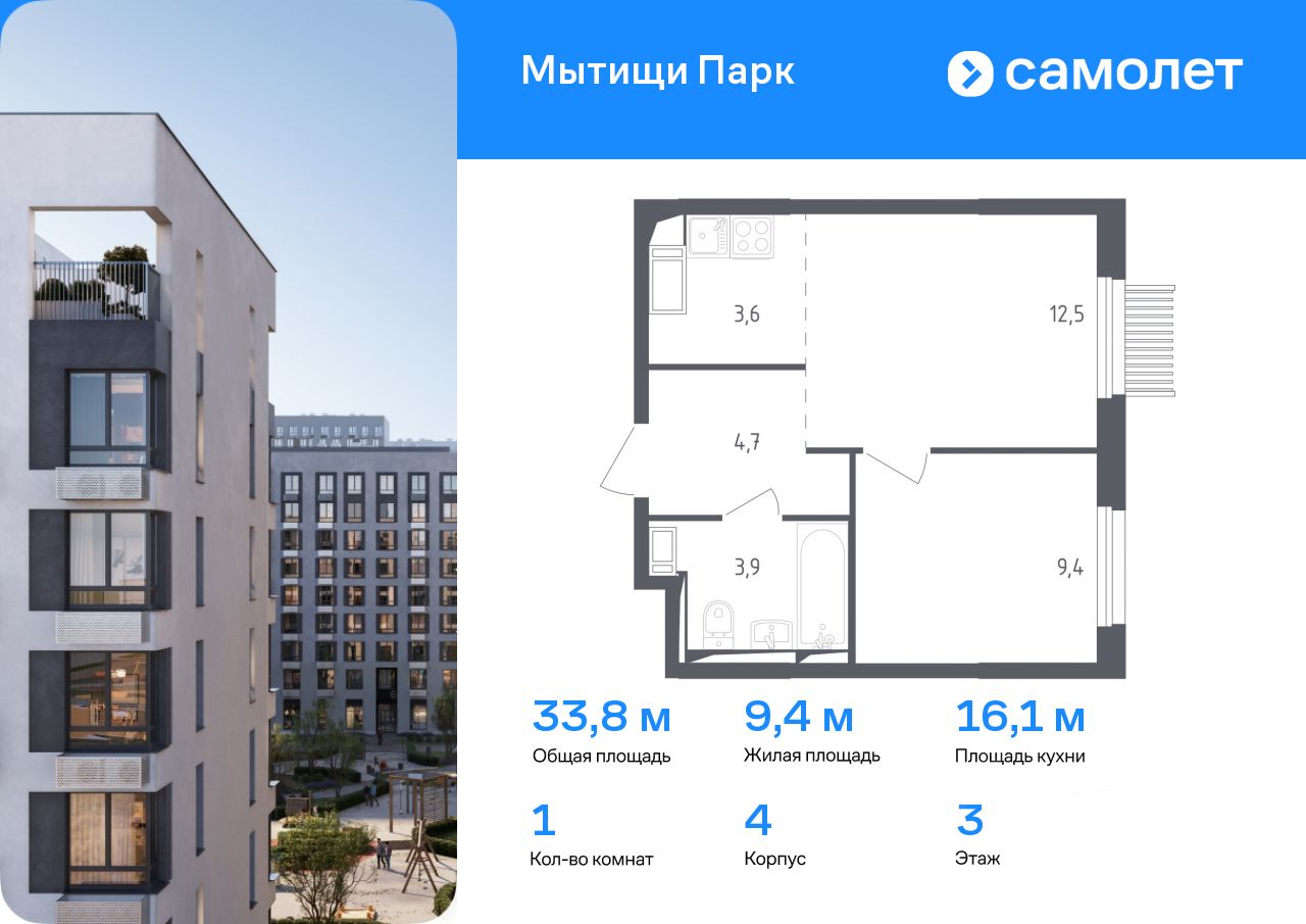 Предлагается 1-комнатная квартира комфорт-класса 33,8 кв.м в корпусе 4 на 3 этаже, в ЖК ''Мытищи Парк'' Квартира с чистовой отделкой. Доступность дополнительных опций уточняйте у застройщика.