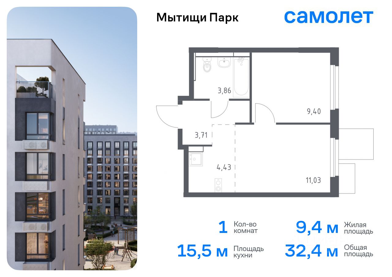 Предлагается 1-комнатная квартира комфорт-класса 32,43 кв.м в корпусе 5 на 14 этаже, в ЖК ''Мытищи Парк'' Квартира с чистовой отделкой. Доступность дополнительных опций уточняйте у застройщика.