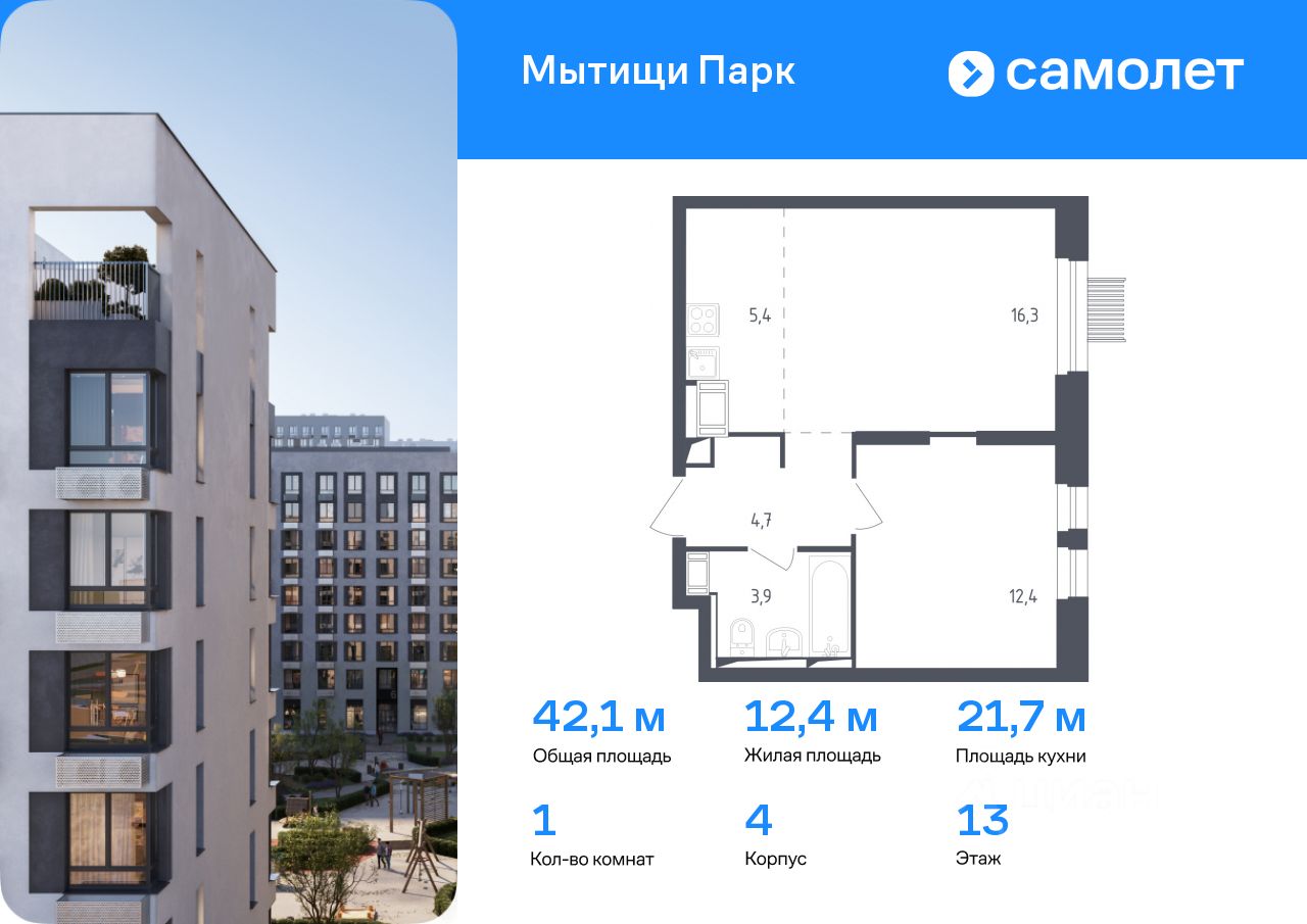 Предлагается 1-комнатная квартира комфорт-класса 42,1 кв.м в корпусе 4 на 13 этаже, в ЖК ''Мытищи Парк''