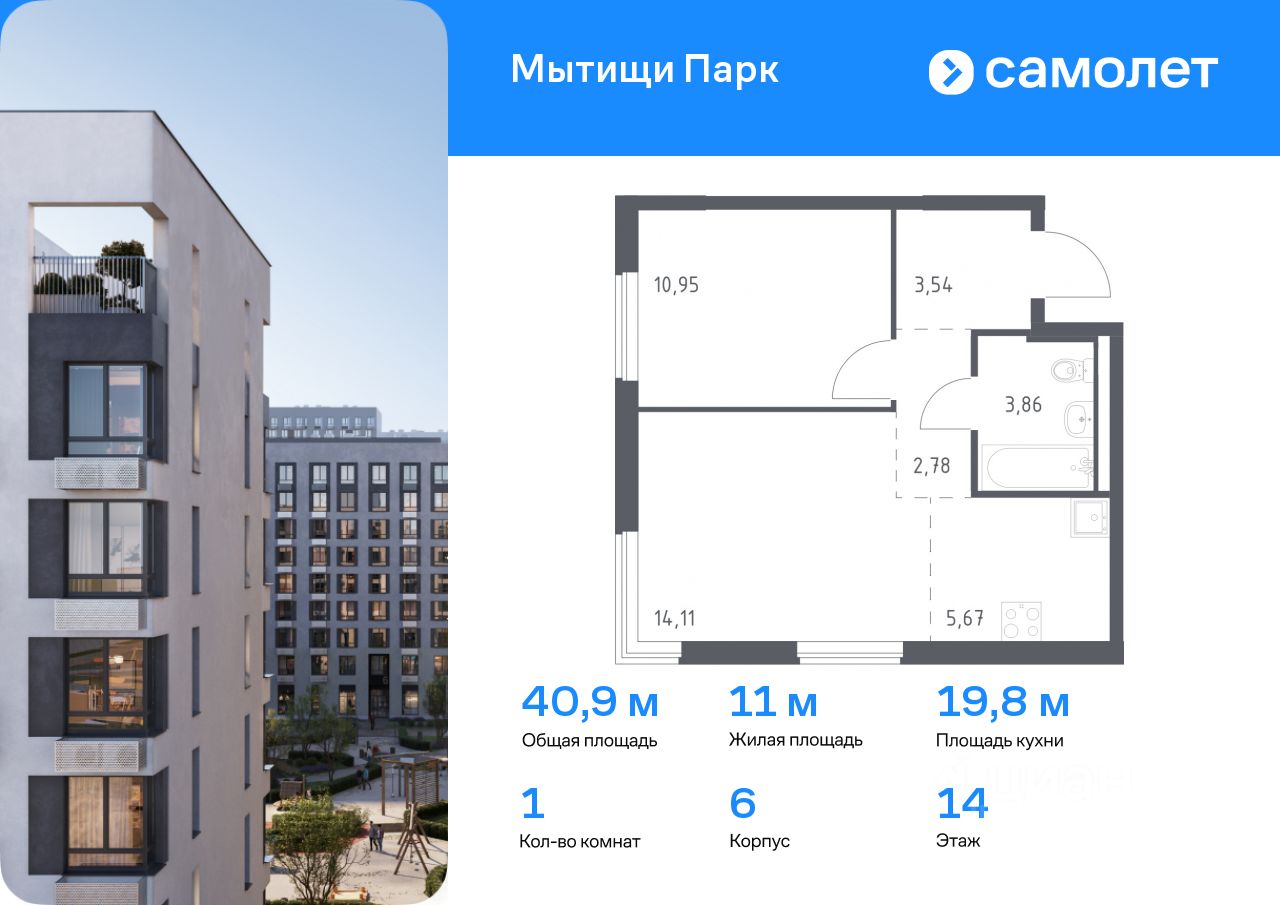 Предлагается 1-комнатная квартира комфорт-класса 40,91 кв.м в корпусе 6 на 14 этаже, в ЖК ''Мытищи Парк''