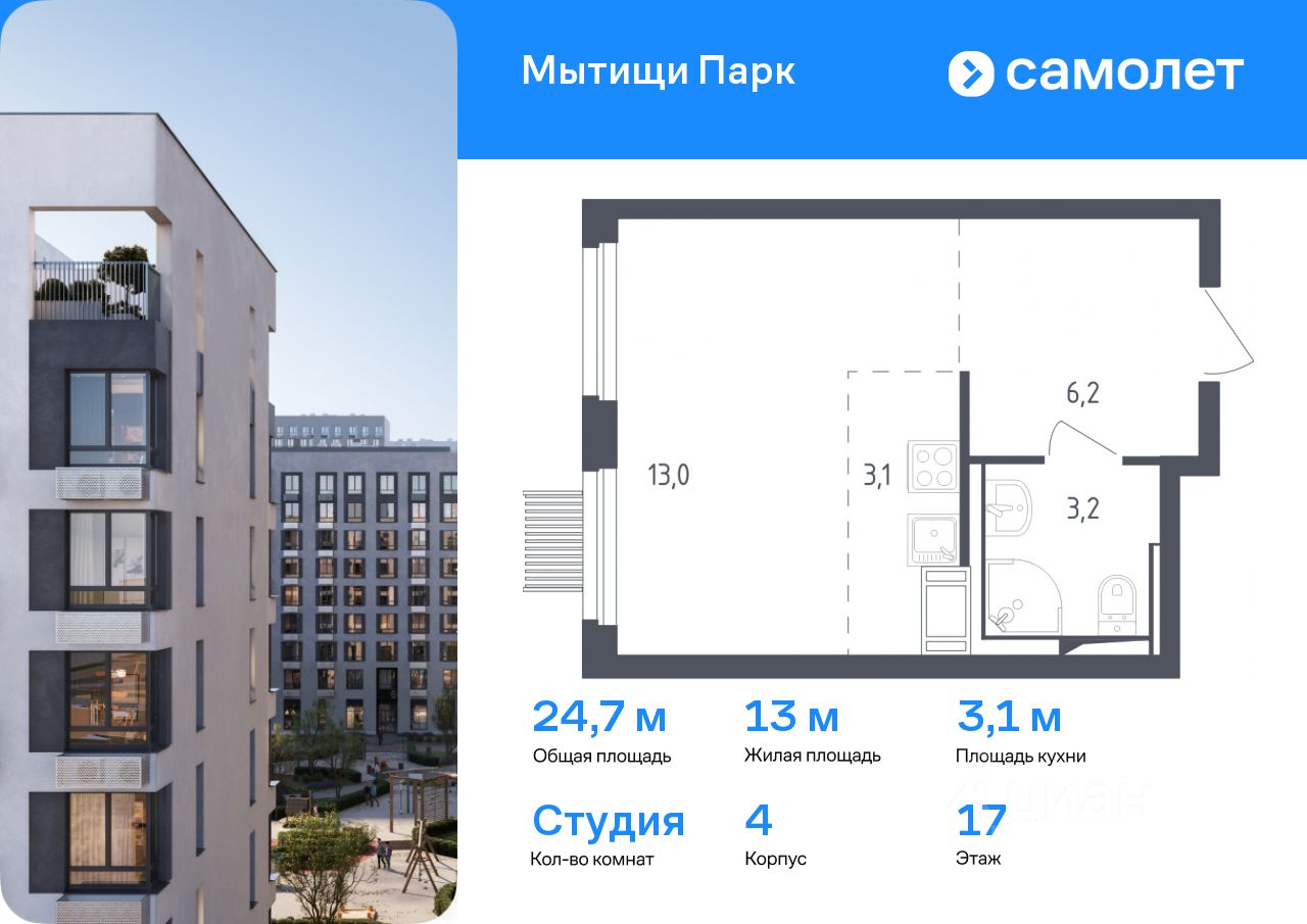 Предлагается квартира студия комфорт-класса 24,7 кв.м в корпусе 4 на 17 этаже, в ЖК ''Мытищи Парк''