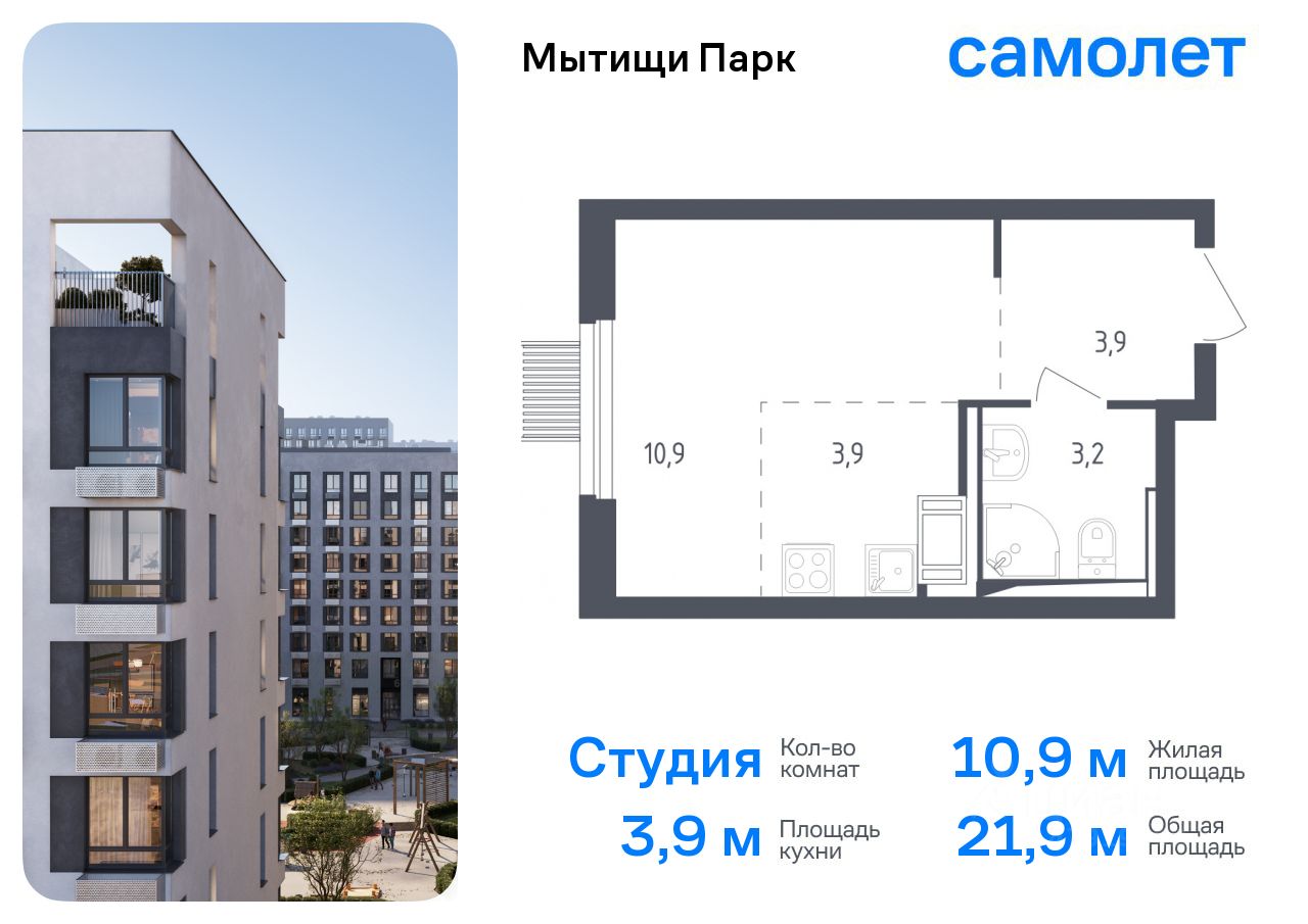 Предлагается квартира студия комфорт-класса 21,9 кв.м в корпусе 4.2 на 7 этаже, в ЖК ''Мытищи Парк'' Квартира с чистовой отделкой. Доступность дополнительных опций уточняйте у застройщика.