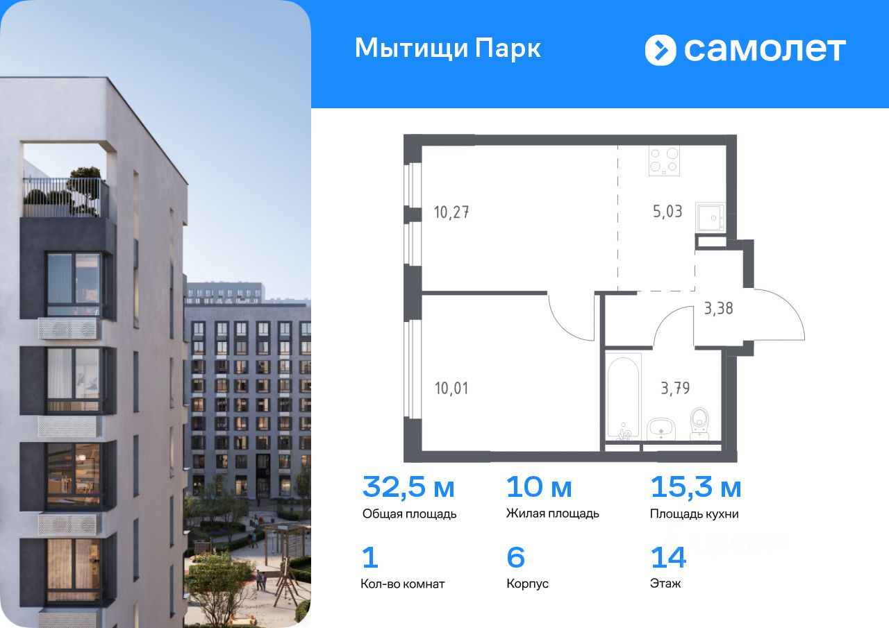 Предлагается 1-комнатная квартира комфорт-класса 32,48 кв.м в корпусе 6 на 14 этаже, в ЖК ''Мытищи Парк''