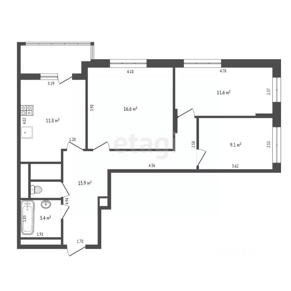 продам 3-к, Академика Каргина, 36б15 200 000 ₽