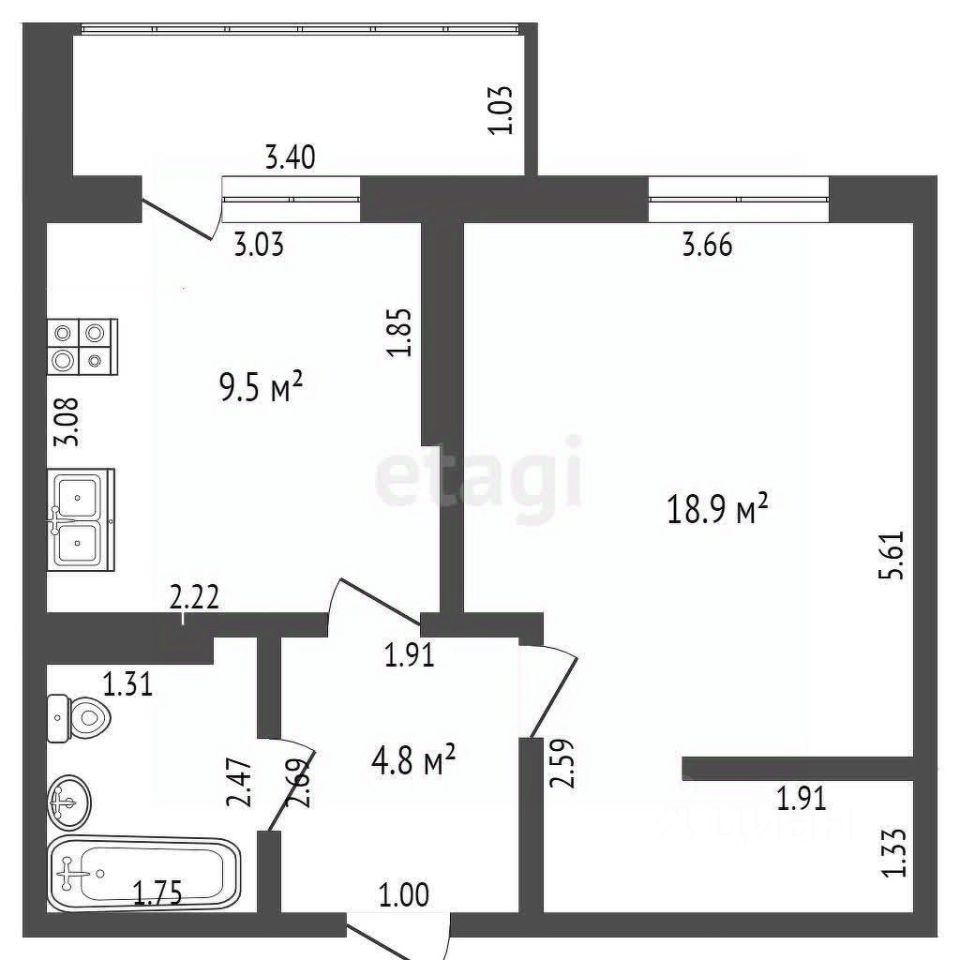просторная 1-комнатная квартира без отделки, в новом квартале малоэтажной застройки комфорт-класса.