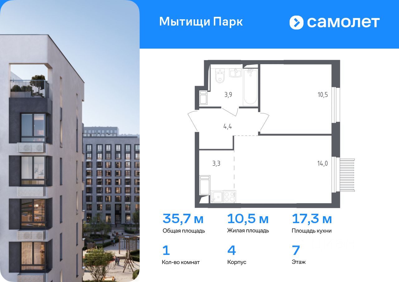 Предлагается 1-комнатная квартира комфорт-класса 35,7 кв.м в корпусе 4 на 7 этаже, в ЖК ''Мытищи Парк''