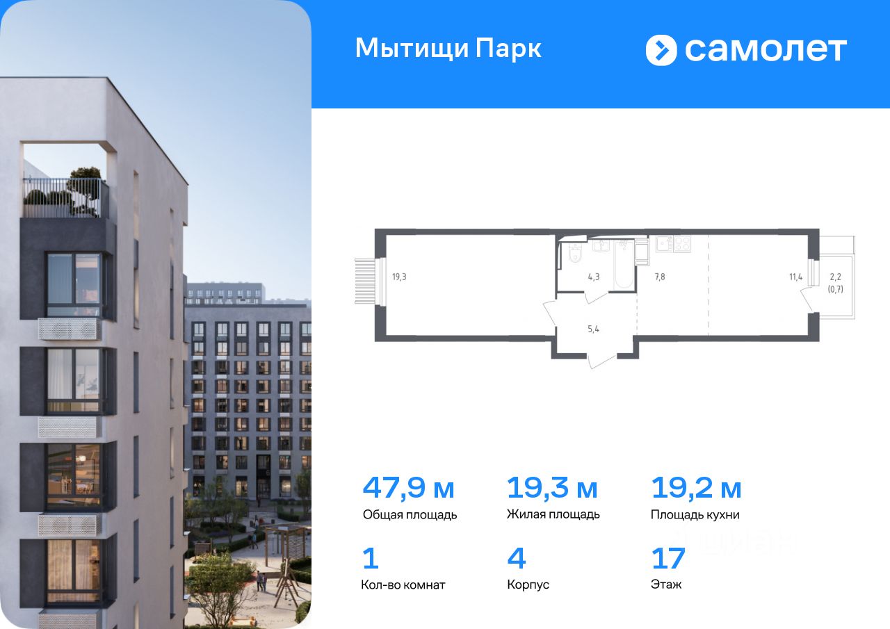 Предлагается 1-комнатная квартира комфорт-класса 47,9 кв.м в корпусе 4 на 17 этаже, в ЖК ''Мытищи Парк''