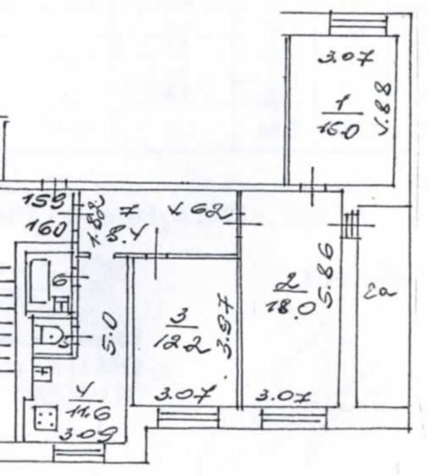 Комнаты : 18м2, 15м2 и 12.2м Кухня 8,2м2 Большой каридор 11м2
