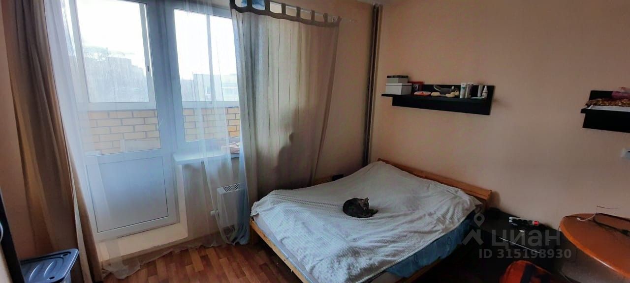 ЗАСЕЛЕНИЕ после 31 марта. Долгосрочная аренда студии в ЖК ''Спутник''. Из мебели и бытовой техники есть: деревянная двуспальная кровать (без матраса, не новая), наборный кухонный гарнитур с мойкой (плиты нет), холодильник, шкаф-купе. В санузле душевая кабина.