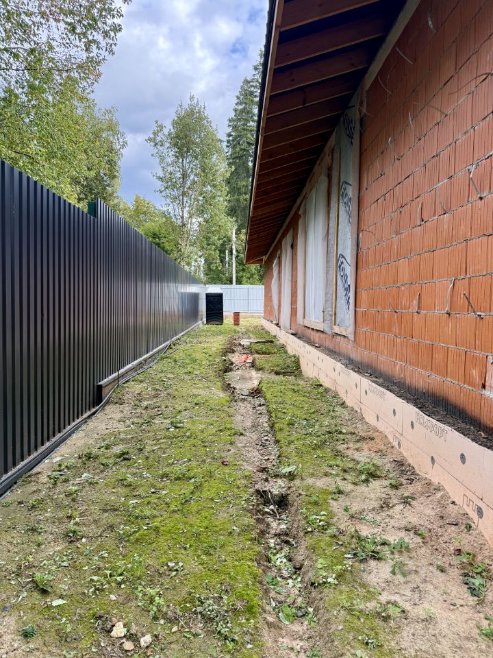 Отмостка - вокруг коттеджа предусмотрено отмостка из бетона В-15 шириной 800:1000мм. на утрамбованном щебнем грунте, толщиной 50мм