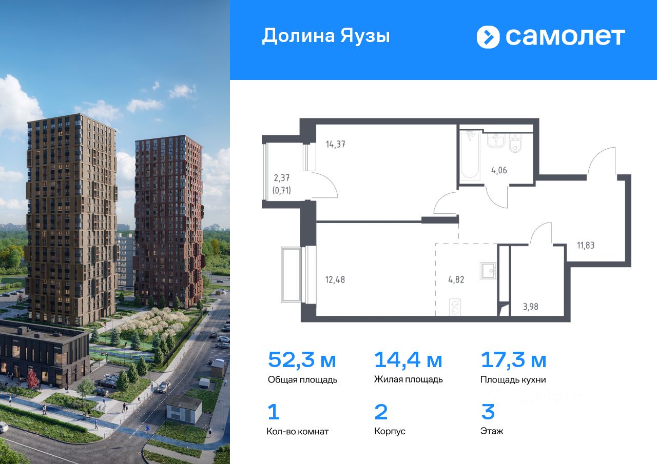 Предлагается 1-комнатная квартира комфорт-класса 52,25 кв.м в корпусе 2 на 3 этаже, в ЖК ''Долина Яузы'' Квартира с чистовой отделкой. Доступность дополнительных опций уточняйте у застройщика.