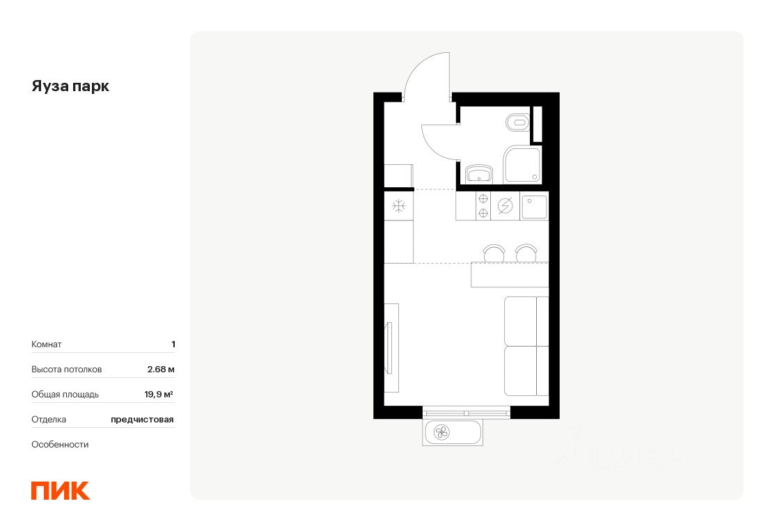 Продаётся квартира-студия площадью 19,9 кв.м на 15 этаже 24 этажного дома (Корпус 12, Секция 1) проекта ПИК Яуза парк. Светлый просторный подъезд на уровне земли, функциональная планировка, большие окна, .