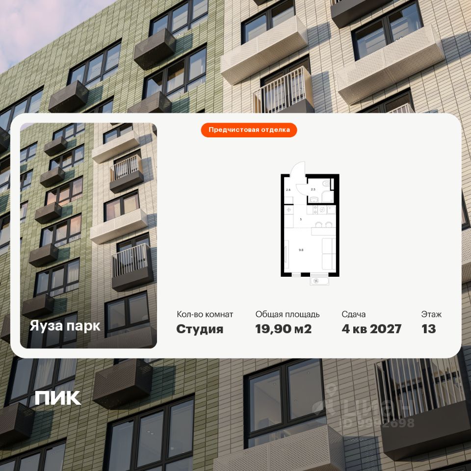 Продаётся квартира-студия площадью 19,9 кв.м на 13 этаже 24 этажного дома (Корпус 12, Секция 1) проекта ПИК Яуза парк. Светлый просторный подъезд на уровне земли, функциональная планировка, большие окна, предчистовая отделка.