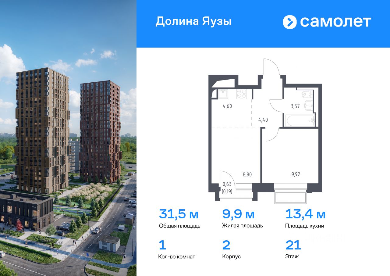 Предлагается 1-комнатная квартира комфорт-класса 31,48 кв.м в корпусе 2 на 21 этаже, в ЖК ''Долина Яузы'' Квартира с чистовой отделкой. Доступность дополнительных опций уточняйте у застройщика.