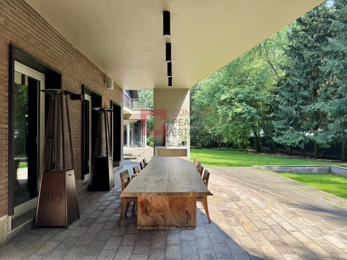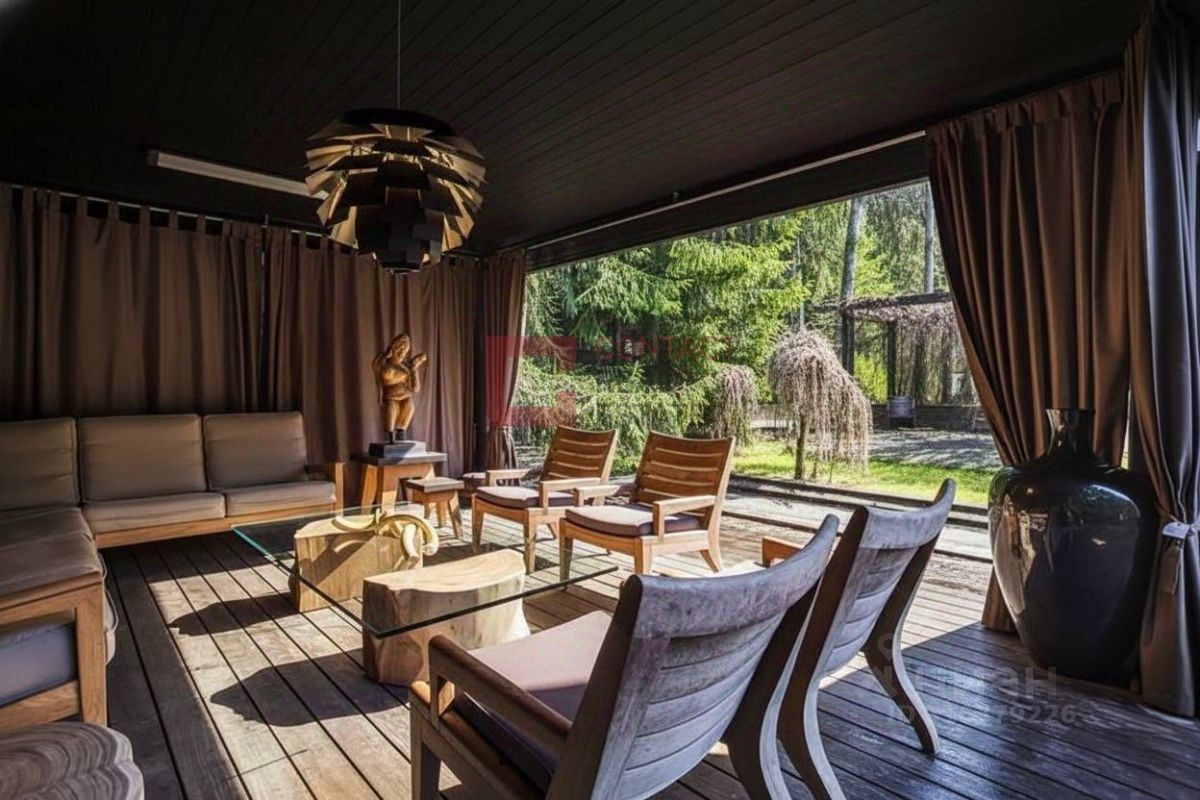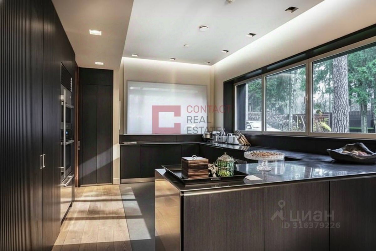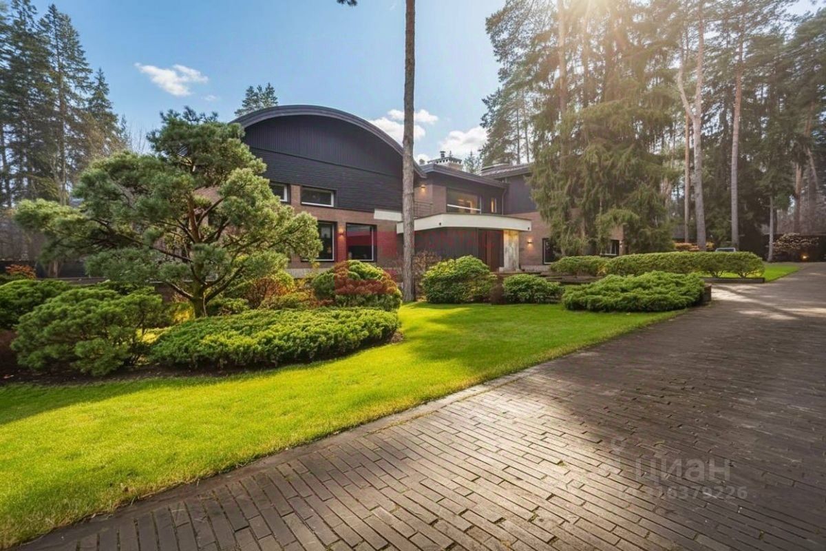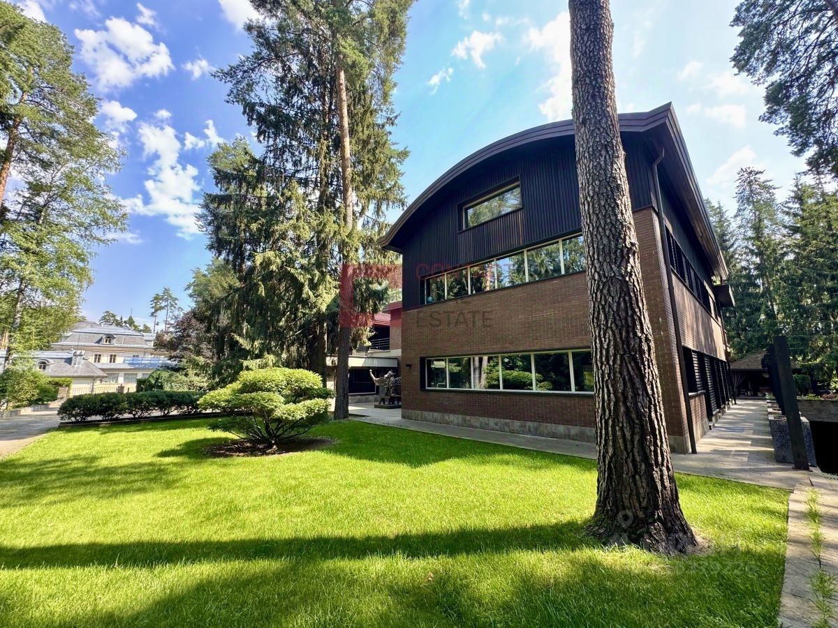ID 542230. КП Сады Майендорф/Санаторий Барвиха. Стильный дом 1400 кв.м в престижном поселке Сады Майендорф (Санаторий Барвиха). В доме хорошо спланированы внутренние помещения, большая площадь панорамного и витражного остекления, позволяющего наслаждаться красивыми видами на участок. Здесь сохранены вековые сосны, высажены хвойные деревья и кустарники. Отличная экология, близость к мегаполису, доступность щедрой инфраструктуры, приятное соседство. Дополнительные постройки: гараж на 5 машиномест.
