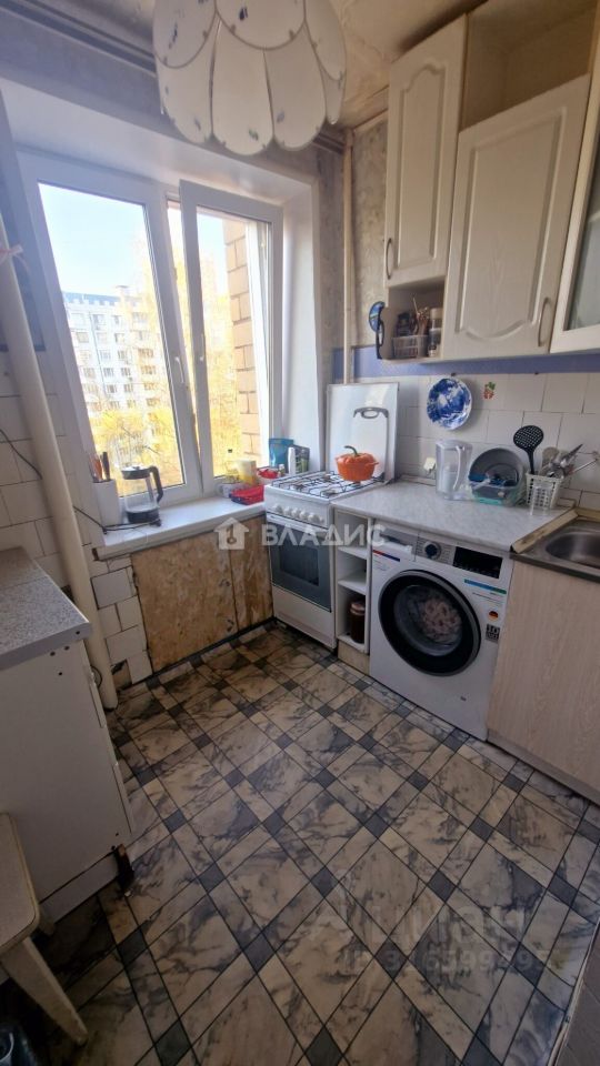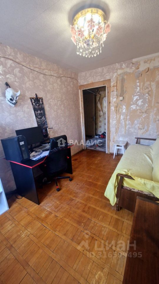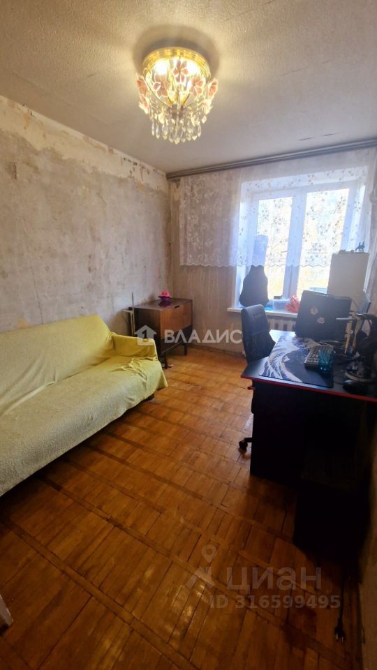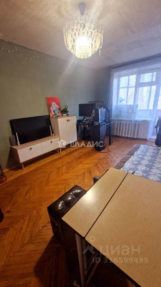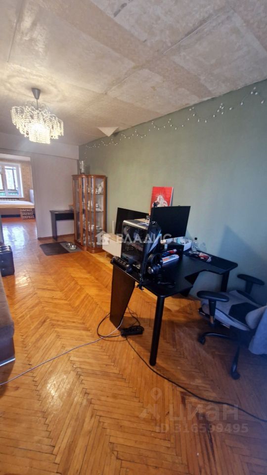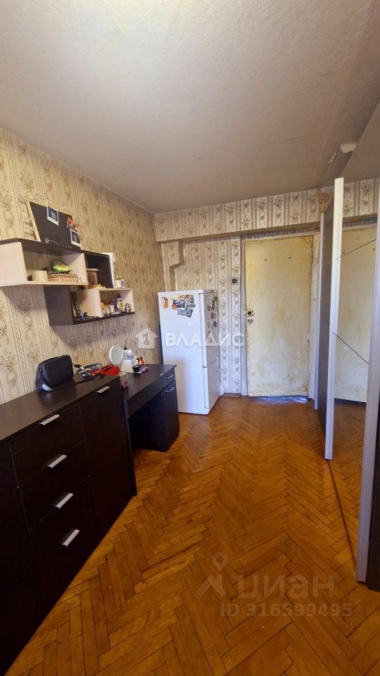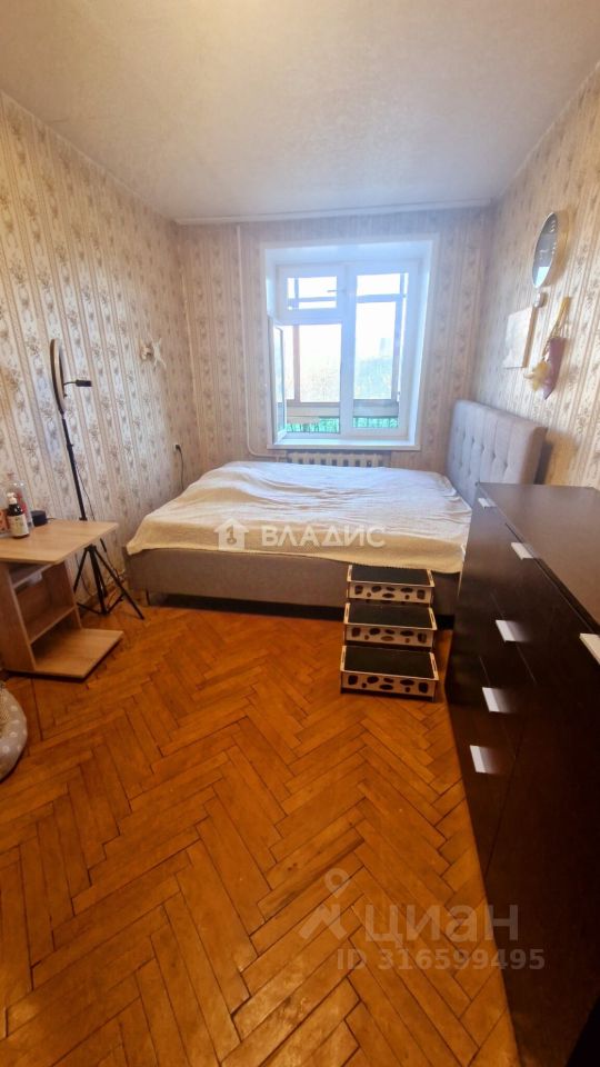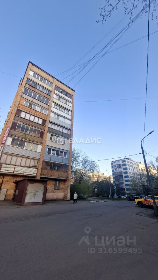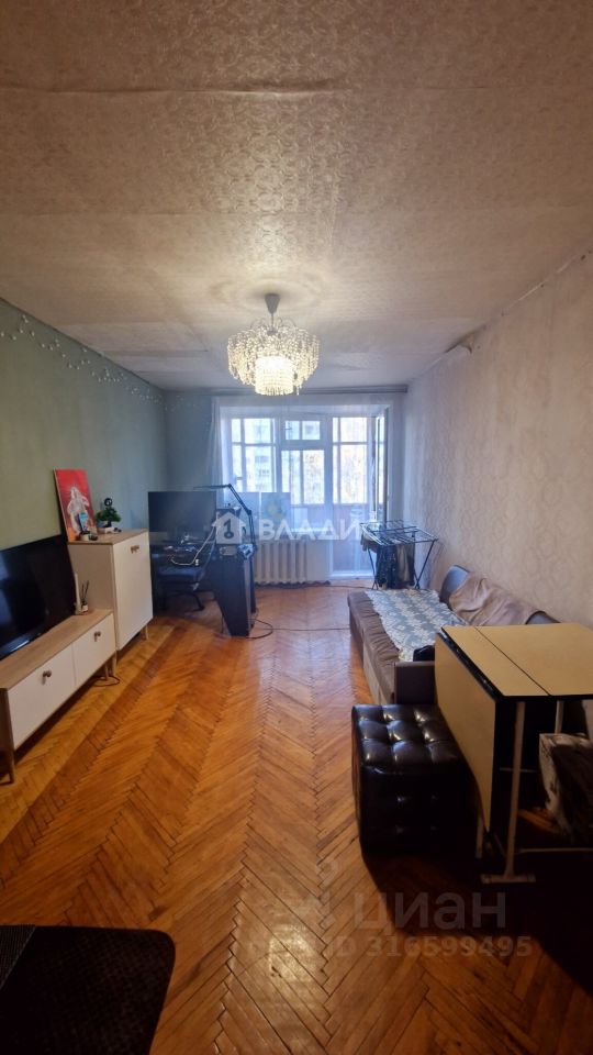 Кирпичный девятиэтажный дом построен в 1974 году. Квартира расположена на шестом этаже, имеет общую площадь 57,4 м², жилую площадь 42,8 м² и кухню площадью 5 м². Высота потолков — 2,6 метра. В квартире три комнаты площадью 14,3 м², 18,9 м² и 9,6 м², а также один раздельный санузел. Окна выходят на улицу и во двор. Есть два балкона. Для автовладельцев предусмотрена наземная парковка около дома.