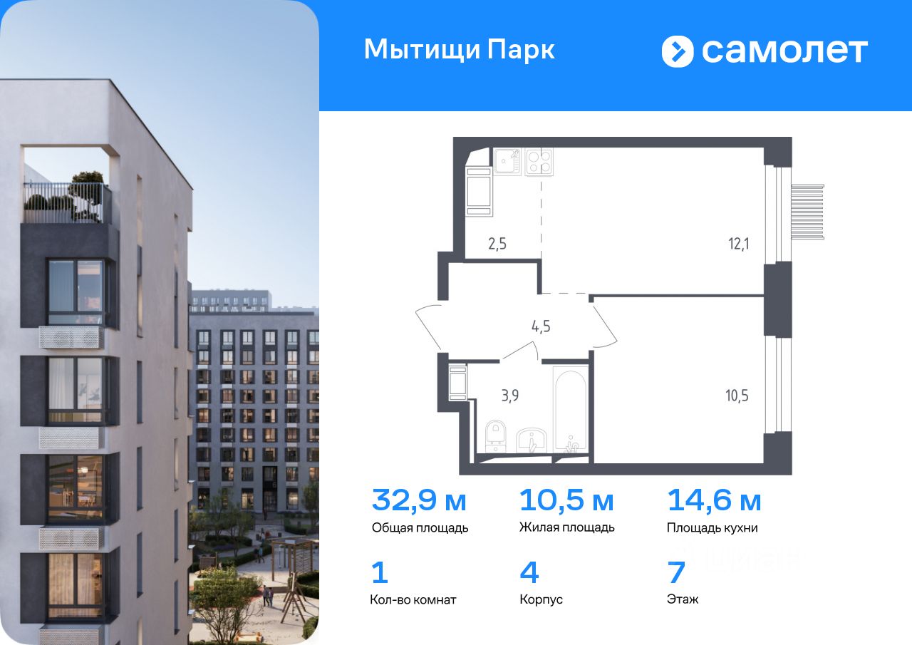 Предлагается 1-комнатная квартира комфорт-класса 32,9 кв.м в корпусе 4 на 7 этаже, в ЖК ''Мытищи Парк'' Квартира с чистовой отделкой. Доступность дополнительных опций уточняйте у застройщика.