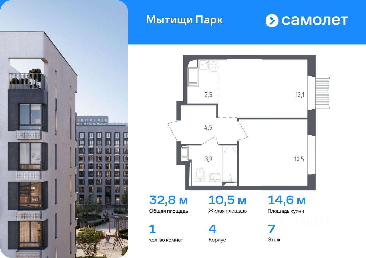 Предлагается 1-комнатная квартира комфорт-класса 32,8 кв.м в корпусе 4 на 7 этаже, в ЖК ''Мытищи Парк'' Квартира с чистовой отделкой. Доступность дополнительных опций уточняйте у застройщика.