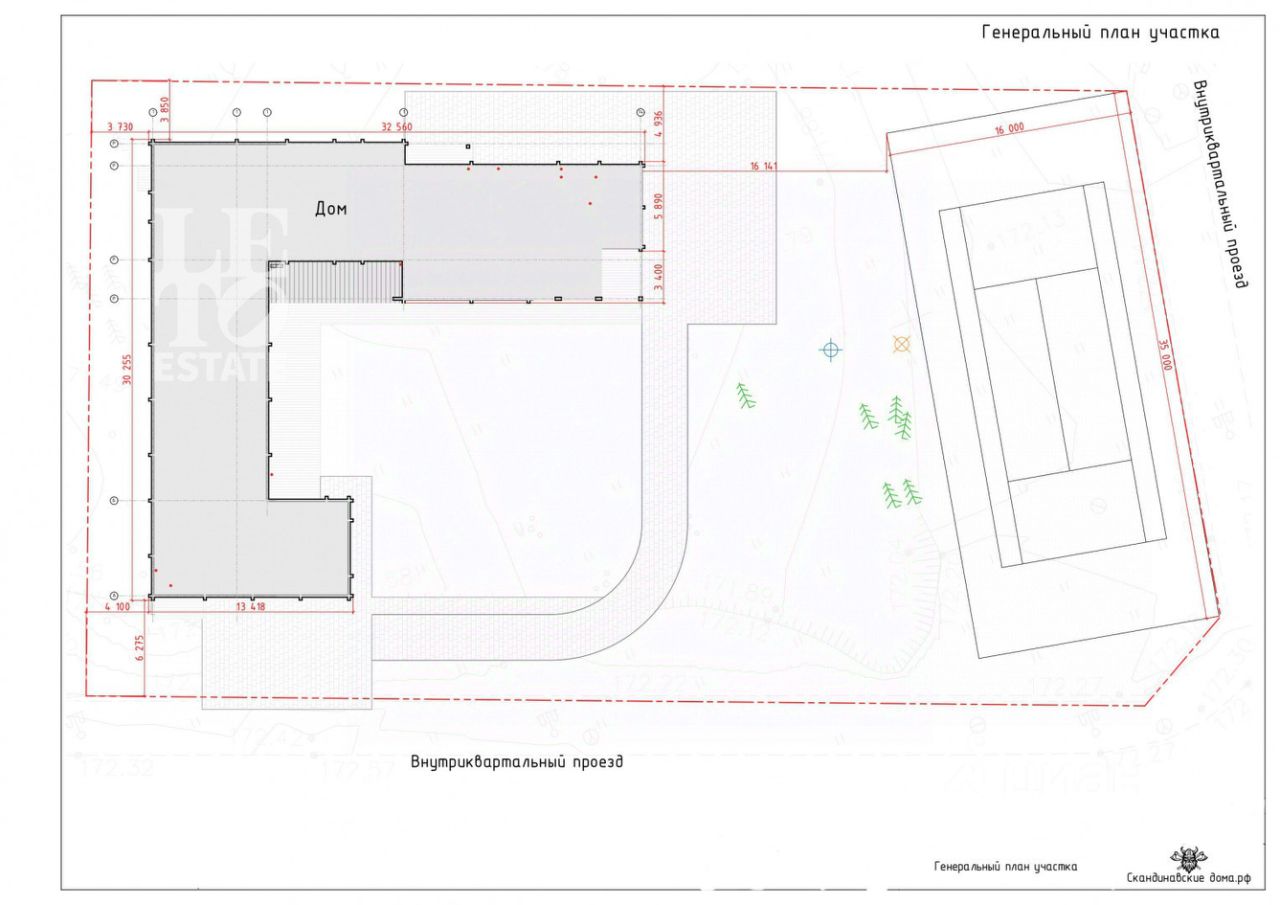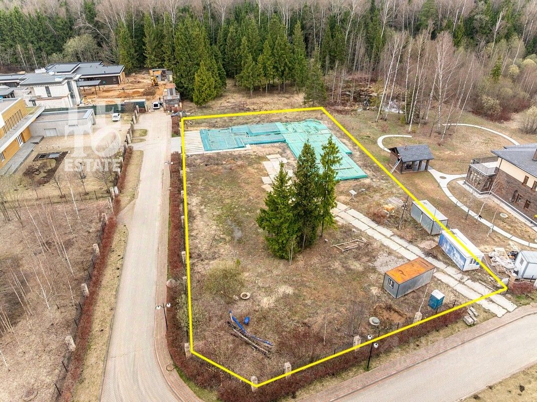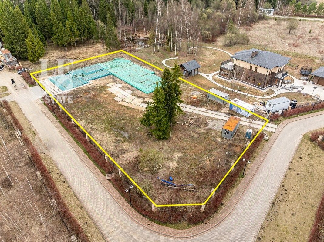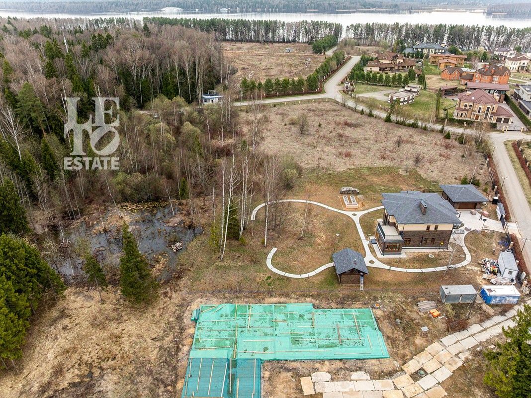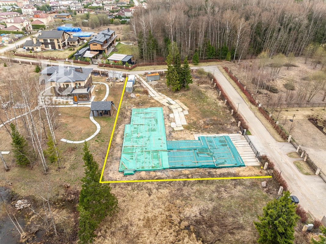 На участке уже заложен фундамент под строительство одноэтажного дома 700 кв. метров, с полным комплектом проектной документации и результатами экспертизы качества бетона и армирования. Фундамент находится в состоянии консервации, соответствующем всем строительным нормам. Вместе с участок будет предоставлен полный проект деревянного дома с стиле хайтек (проект - призёр конкурса ''Деревянные дома''), проекты интерьеров части помещений, проект ландшафта от одного из лучших бюро, а также оборудование канального кондиционирования LG на весь дом, индивидуально изготовленные для проекта двери и витражи Shuko. На участок заведено электричество 35 кВТ, установлен газовый счетчик. По одной из сторон участка установлен забор с гаражными воротами на электроприводе. Реализована профессионально спроектированная дренажная система с поглотительными колодцами. Все коммуникации в поселке центральные.