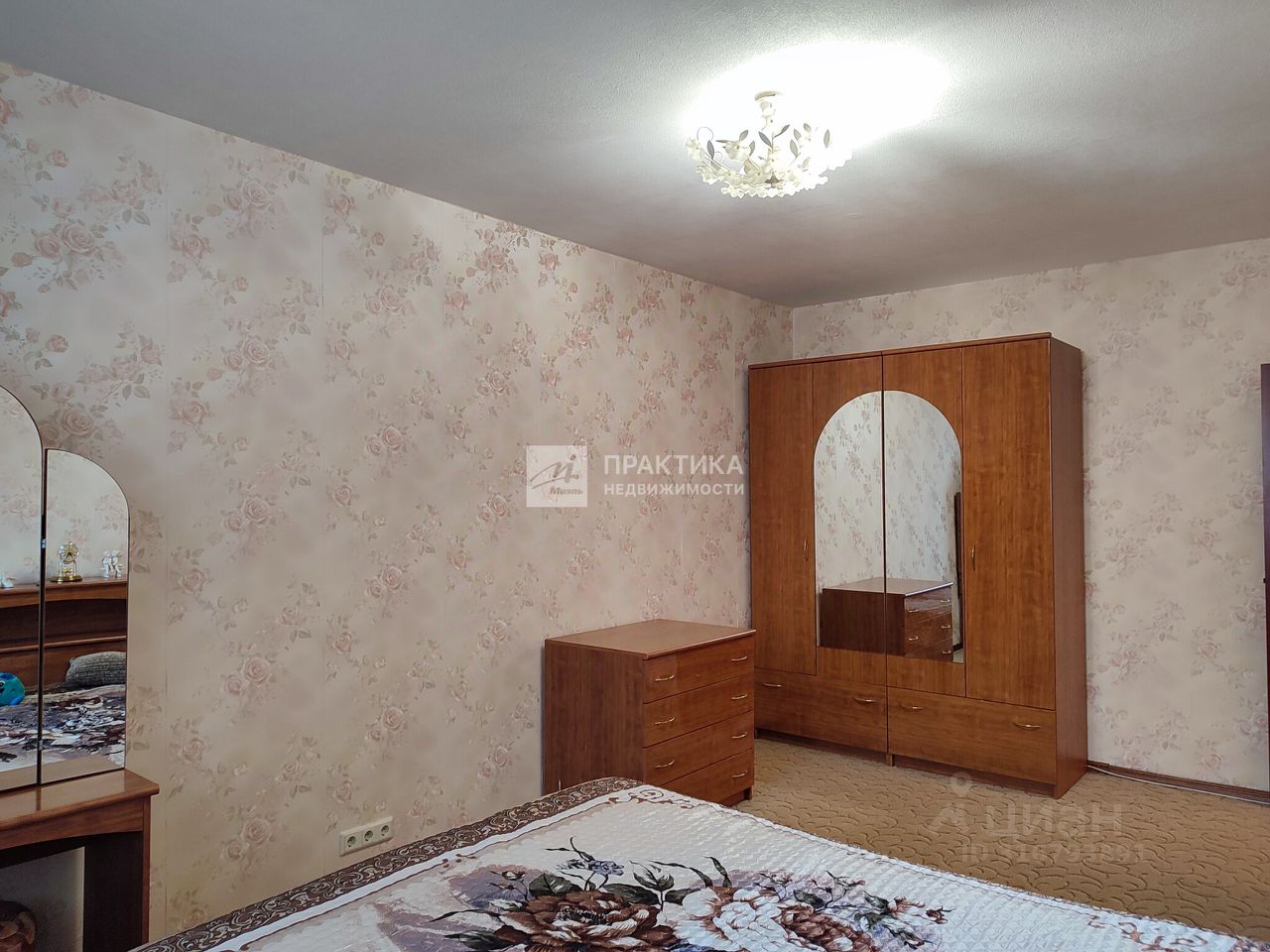 В кухне: стены - обои, пол и фартук - плитка. В комнате: пол - ковролин, на стенах обои. В санузле: стены, пол - плитка, все сантехническое оборудование в хорошем состоянии. Вся мебель и техника остаётся.