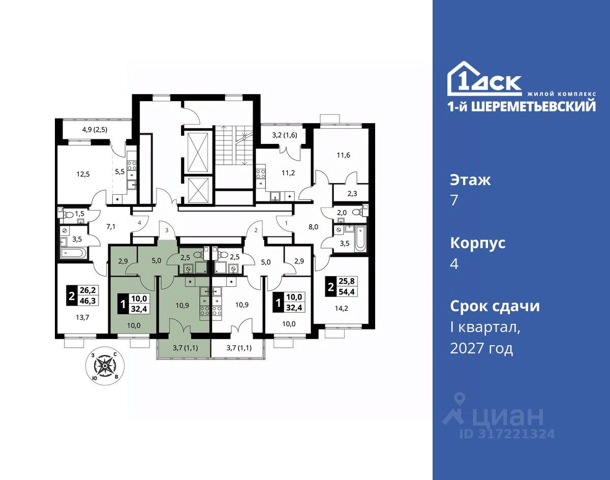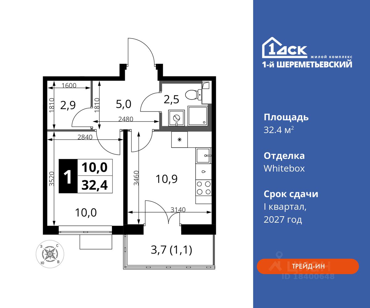 Максимальные скидки при 100% оплате. Прямая продажа от застройщика! Жилой Комплекс класса Комфорт плюс. Продаётся 1-к квартира номер 548 общей площадью 32.4 кв.м на 7-м этаже 16 этажного дома. Отделка Whitebox.