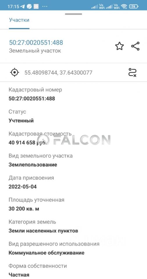 Касторовый номер 50:27:0020551:488. Имеется ГПЗУ.