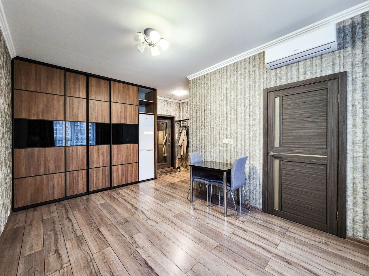 Продается 1-на комнатная квартира общей площадью 32,3 кв.м., расположенная на 13-м этаже 17-этажного монолитного дома. Квартира удобной планировки в формате еврооднушка. Есть отдельная, изолированная спальня, а также гостиная, объединённая с кухней и прихожей. В гостиной кондиционер. Мини кухня позволила высвободить пространство в гостиной. Холодильник спрятан в просторный шкаф-купе. В квартире есть все необходимое для проживания. Балкон застеклен. В микрорайоне ЖК Новое Медведково развитая инфраструктура: лингвистическая гимназия, детский сад, МФЦ, множество различных магазинов и ярмарок. Для любителей прогулок на свежем воздухе в пешей доступности Мытищинский лесопарк.