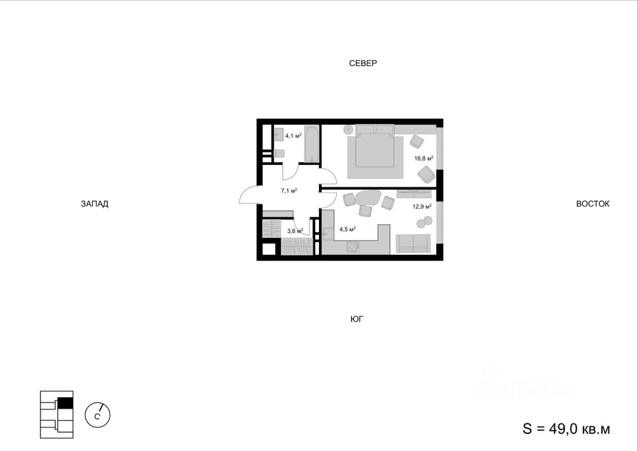 Продаётся 2-комнатная квартира в строящемся доме (Корпус 1), срок сдачи: I-кв. 2026, общей площадью 49 кв.м., на 9 этаже. Многоквартирный жилой дом со встроенно-пристроенными нежилыми помещениями и автостоянкой