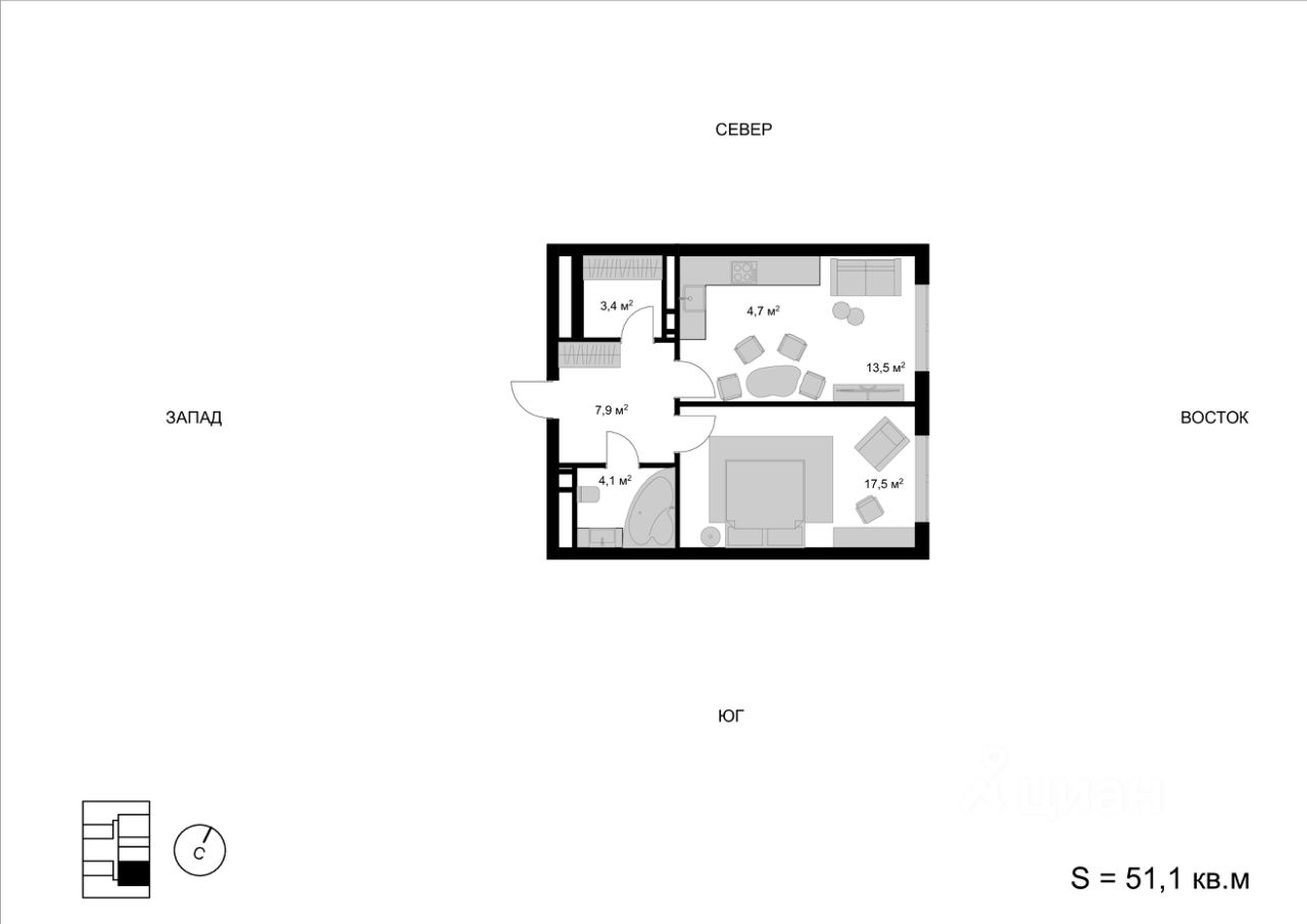 Продаётся 2-комнатная квартира в строящемся доме (Корпус 1), срок сдачи: IV-кв. 2025, общей площадью 51.1 кв.м., на 11 этаже. Многоквартирный жилой дом со встроенно-пристроенными нежилыми помещениями и автостоянкой