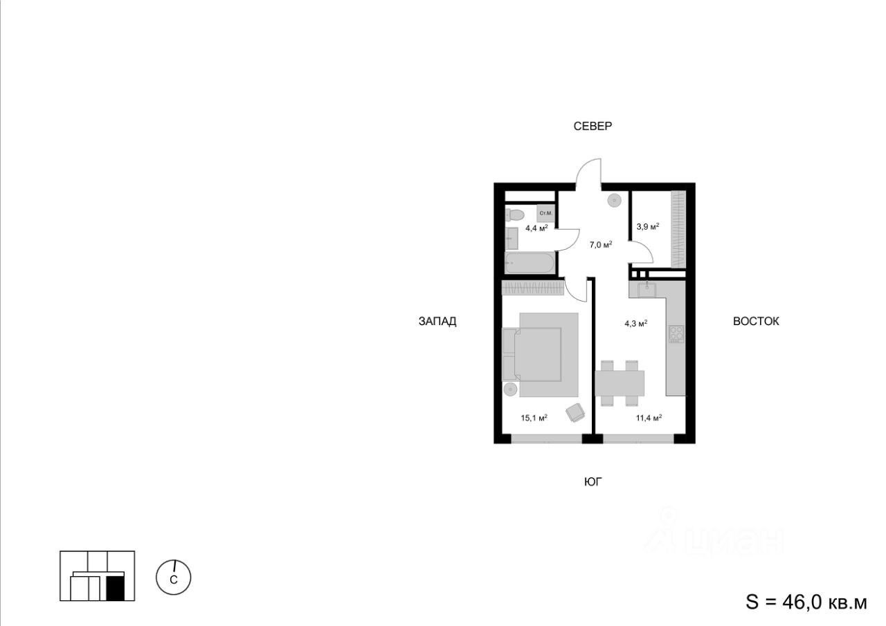 Продаётся 2-комнатная квартира в строящемся доме (Корпус 1), срок сдачи: IV-кв. 2025, общей площадью 46 кв.м., на 11 этаже. Многоквартирный жилой дом со встроенно-пристроенными нежилыми помещениями и автостоянкой